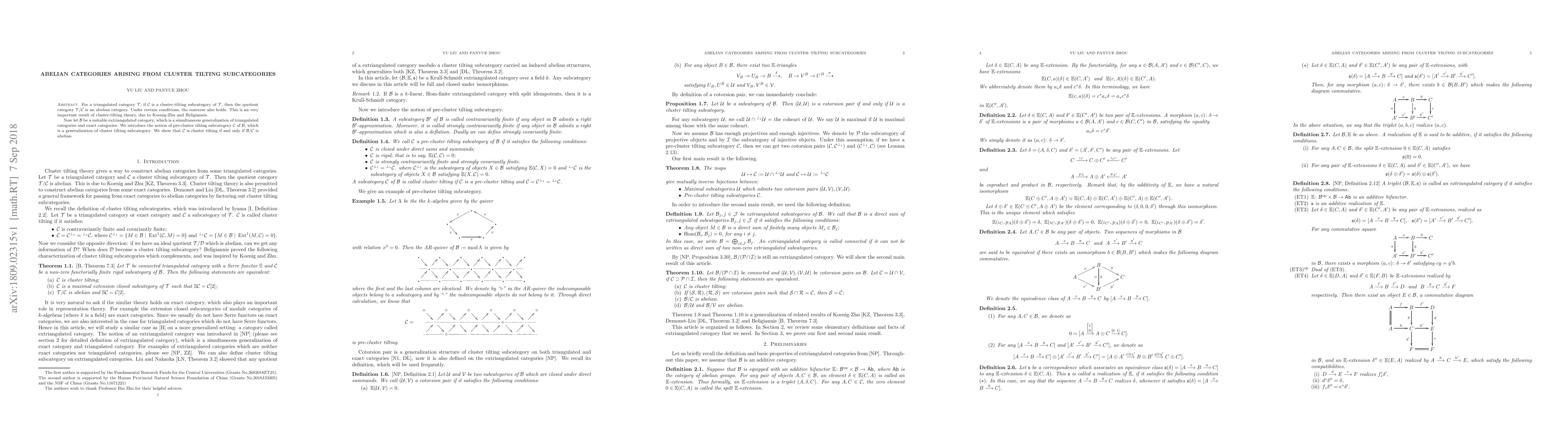 This paper explores abelian categories derived from cluster tilting subcategories in triangulated and extriangulated categories. It establishes that a subcategory C is cluster tilting if and only if the quotient category B/C is abelian, extending the results of Koenig-Zhu and Beligiannis.