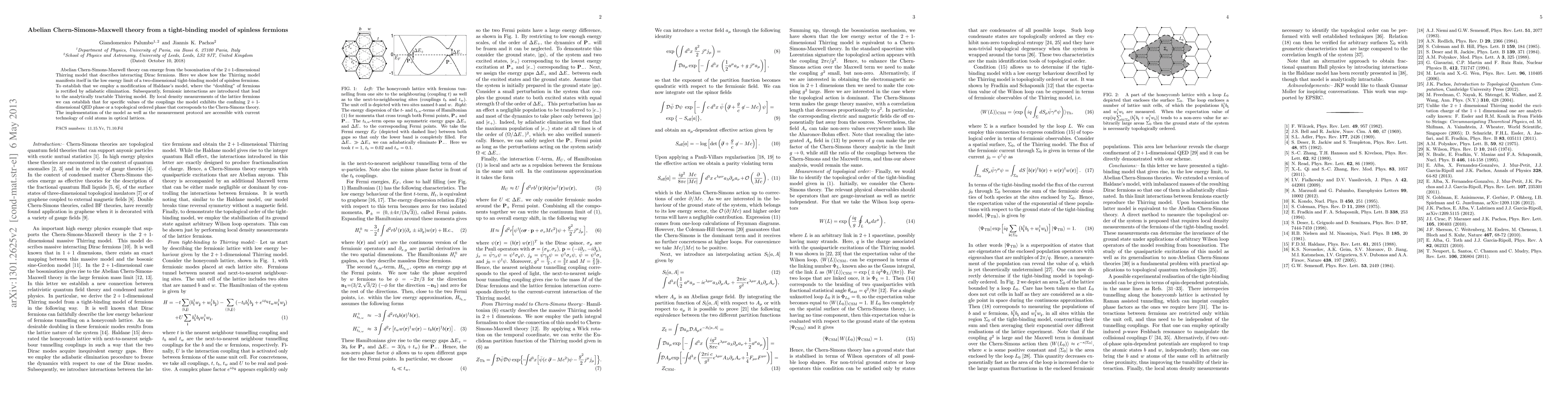 This paper demonstrates how Abelian Chern-Simons-Maxwell theory arises from the bosonization of a 2+1-dimensional Thirring model, which describes interacting Dirac fermions, by showing its manifestation in a modified two-dimensional tight-binding model of spinless fermions. The study reveals the model's ability to exhibit either a confining QED phase or a topological Chern-Simons phase, accessible via cold atom experiments in optical lattices.