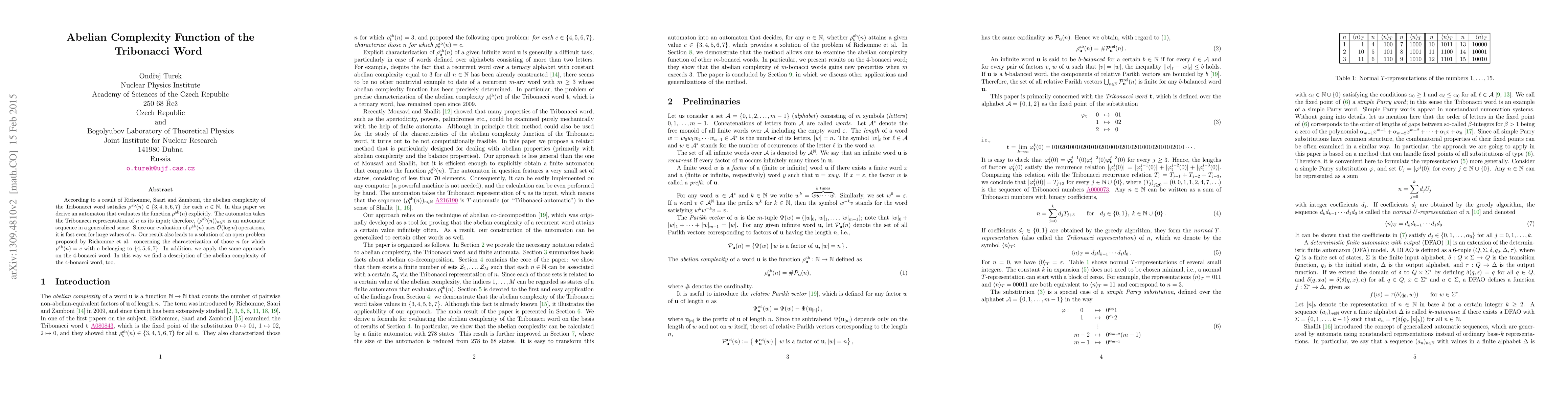 According to a result of Richomme, Saari and Zamboni, the abelian complexity of the Tribonacci word satisfies $\rho^{\mathrm{ab}}(n)\in\{3,4,5,6,7\}$ for each $n\in\mathbb{N}$. In this paper we derive an automaton that evaluates the function $\rho^{\mathrm{ab}}(n)$ explicitly. The automaton takes the Tribonacci representation of $n$ as its input; therefore, $(\rho^{\mathrm{ab}}(n))_{n\in\mathbb{N}}$ is an automatic sequence in a generalized sense. Since our evaluation of $\rho^{\mathrm{ab}}(n)$ uses $\mathcal{O}(\log n)$ operations, it is fast even for large values of $n$. Our result also leads to a solution of an open problem proposed by Richomme et al. concerning the characterization of those $n$ for which $\rho^{\mathrm{ab}}(n)=c$ with $c$ belonging to $\{4,5,6,7\}$. In addition, we apply the same approach on the $4$-bonacci word. In this way we find a description of the abelian complexity of the $4$-bonacci word, too.