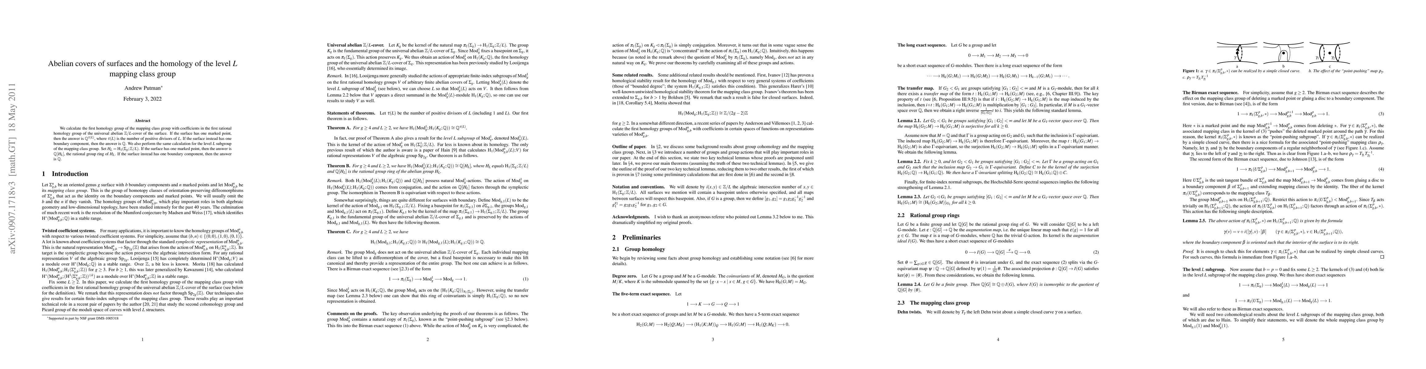 The paper calculates the first homology group of the mapping class group using a universal abelian cover of a surface, revealing key differences in its structure depending on whether the surface has marked points or boundary components.