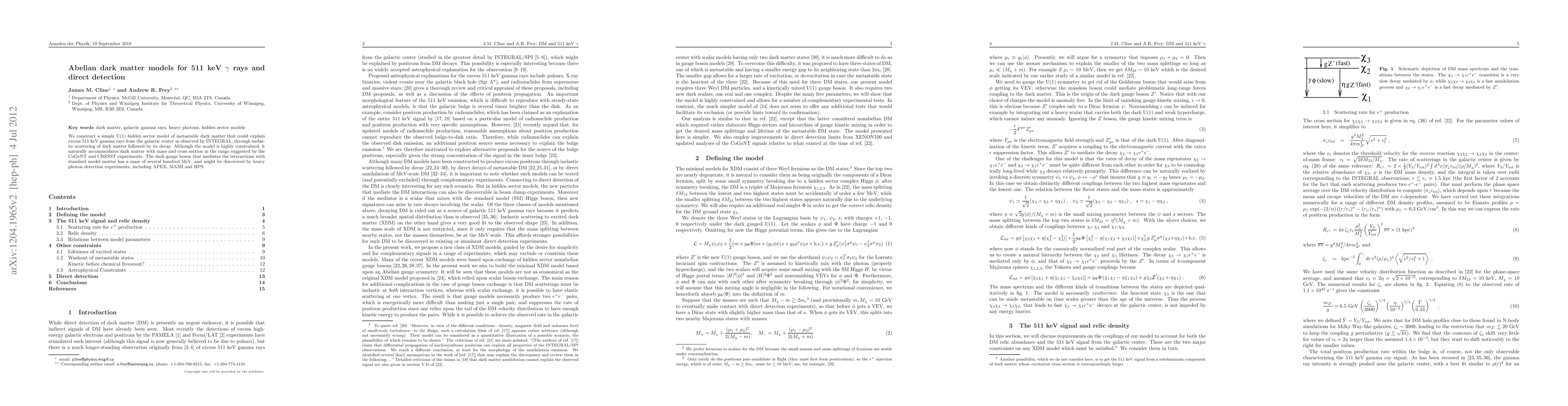 A new U(1) hidden sector model explains 511 keV gamma rays from the galactic center through dark matter scattering and decay, with implications for direct detection experiments.