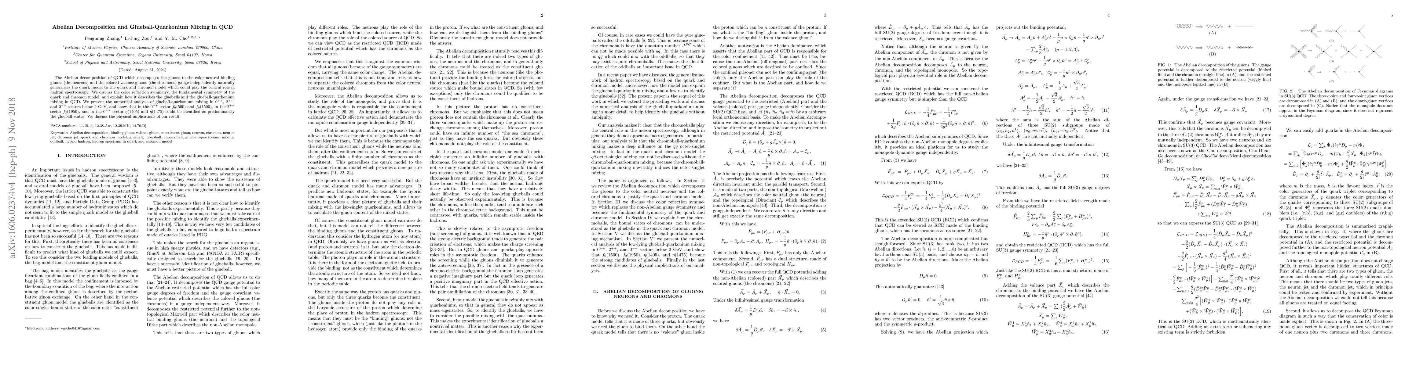 This paper explores the Abelian decomposition of QCD, proposing a quark-chromon model that generalizes the quark model for hadron spectroscopy. It identifies glueball-quarkonium mixing in QCD, particularly in the $0^{++}$, $2^{++}$, and $0^{-+}$ sectors below 2 GeV, suggesting that certain particles like $f_0(500)$, $f_0(1500)$, $f_2(1950)$, $\eta(1405)$, and $\eta(1475)$ are predominantly glueball states.