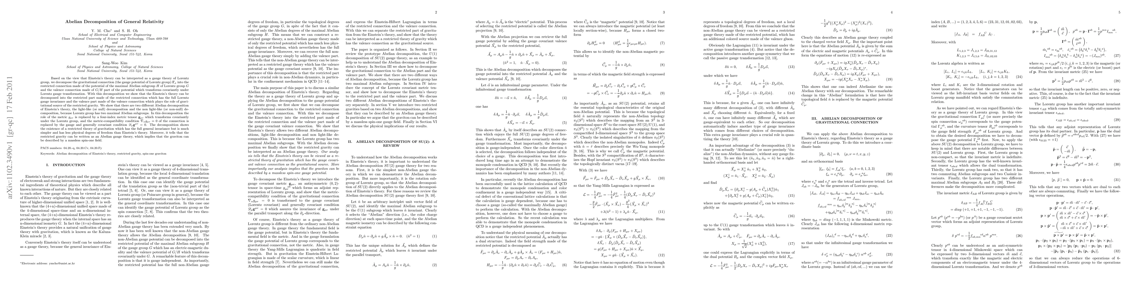 The paper proposes a new approach to understanding General Relativity by decomposing it into two simpler theories: one with full Lorentz gauge invariance but fewer physical degrees of freedom, and another that describes the graviton as a massless spin-one field.