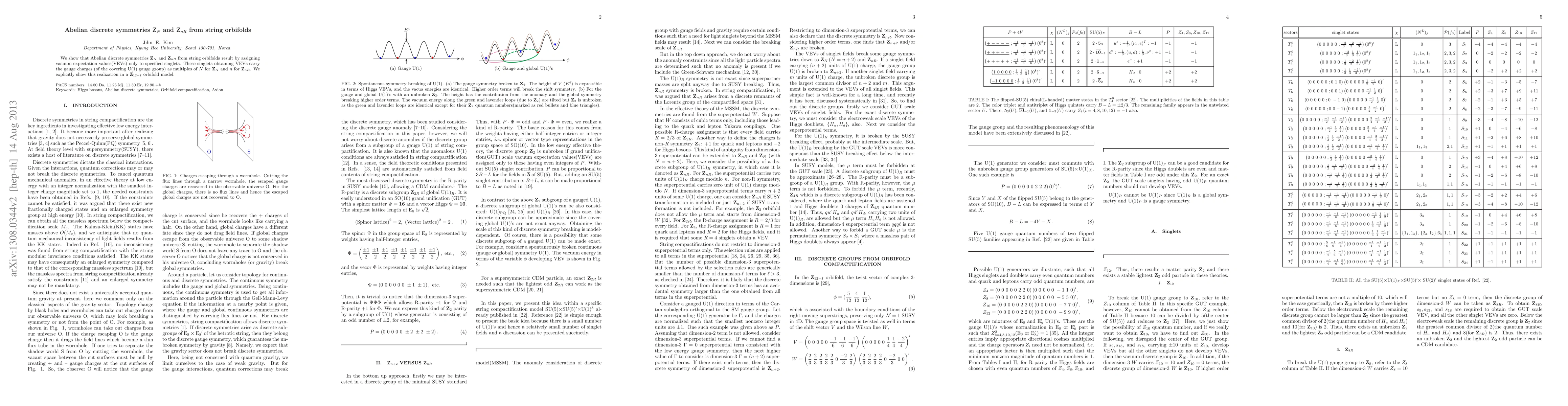The research demonstrates a method to obtain Abelian discrete groups Z_N from string compactifications by assigning vacuum expectation values (VEVs) to specific singlets.