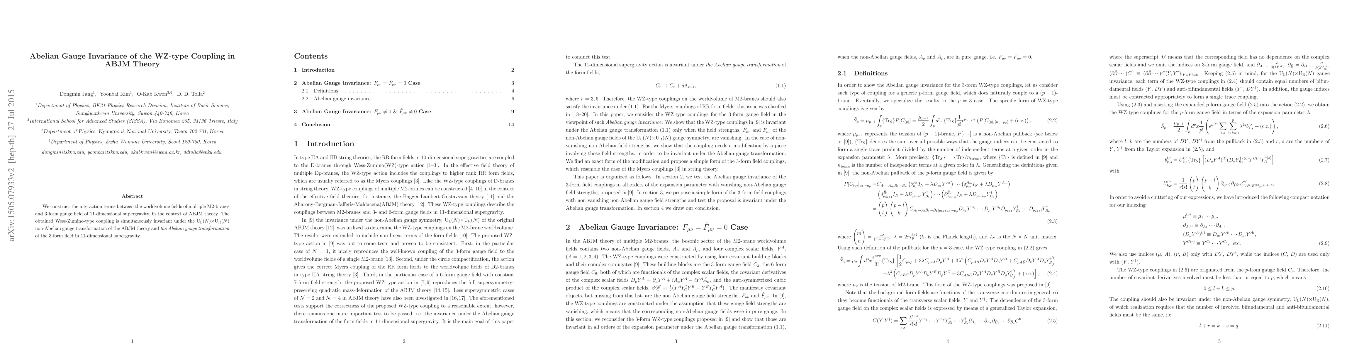 This paper constructs the Wess-Zumino-type coupling for the interaction between M2-branes and a 3-form gauge field in ABJM theory, demonstrating its invariance under both the non-Abelian gauge transformations of ABJM and the Abelian gauge transformations of the 3-form field.