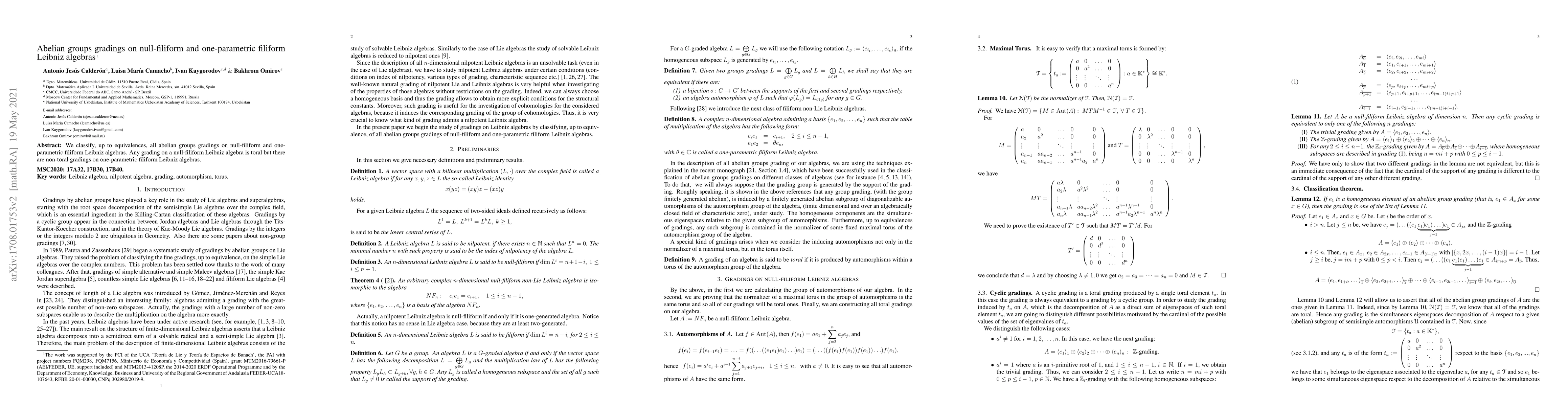 This paper classifies abelian group gradings on null-filiform and one-parametric filiform Leibniz algebras, showing that null-filiform gradings are always toral, while one-parametric filiform gradings can be either toral or non-toral.
