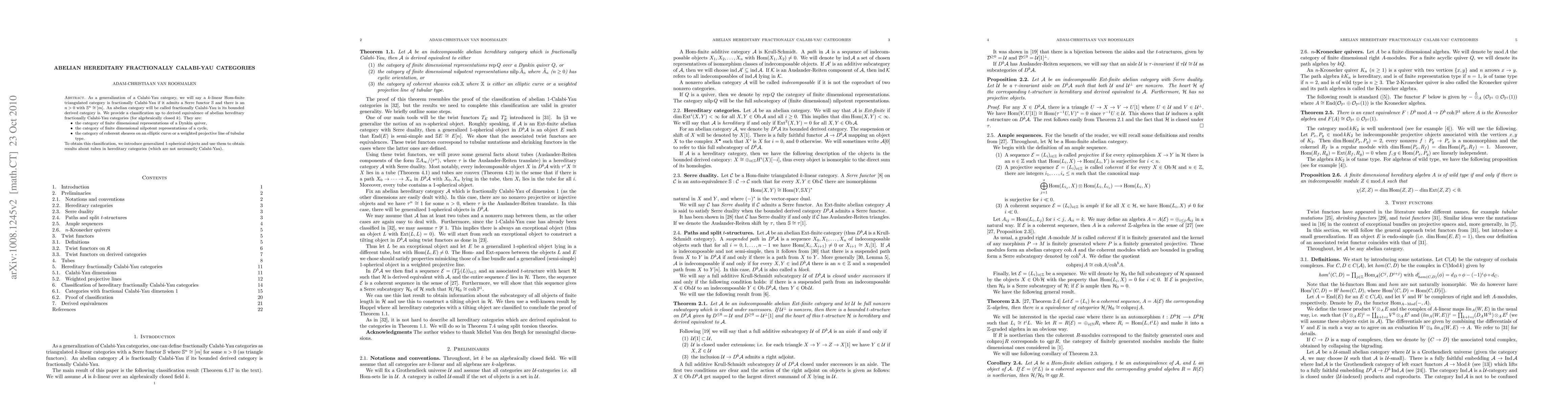 This paper classifies abelian hereditary fractionally Calabi-Yau categories up to derived equivalence, identifying them as categories of representations of Dynkin quivers, nilpotent representations of cycles, and coherent sheaves on elliptic curves or tubular weighted projective lines. The classification leverages generalized 1-spherical objects and insights into tubes in hereditary categories.