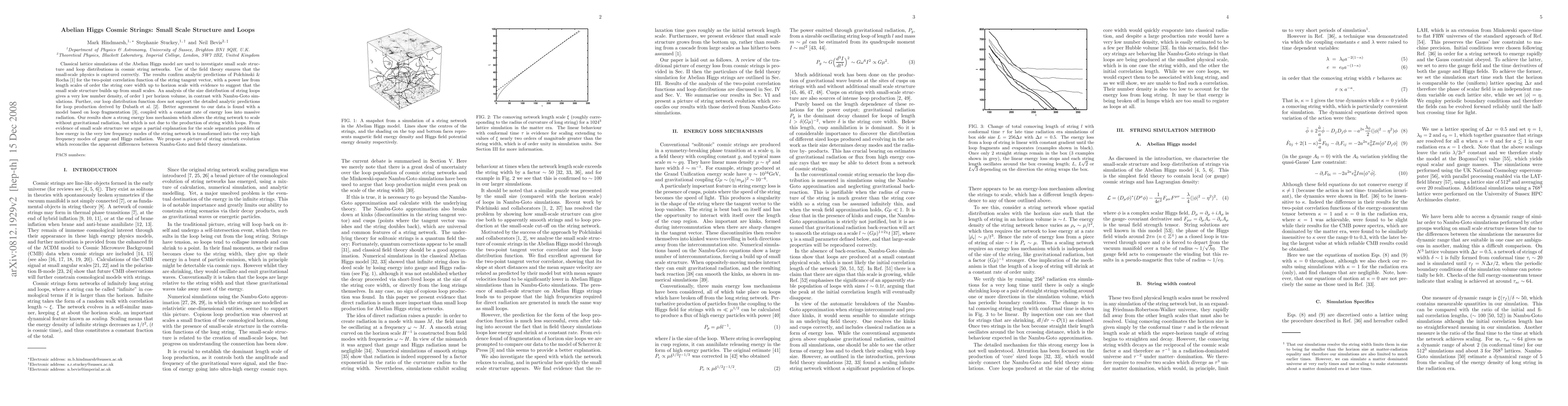 This study uses computer simulations to model cosmic strings in the universe, finding that small-scale structure builds up from smaller scales and that string loops have a very low number density, contradicting previous predictions.