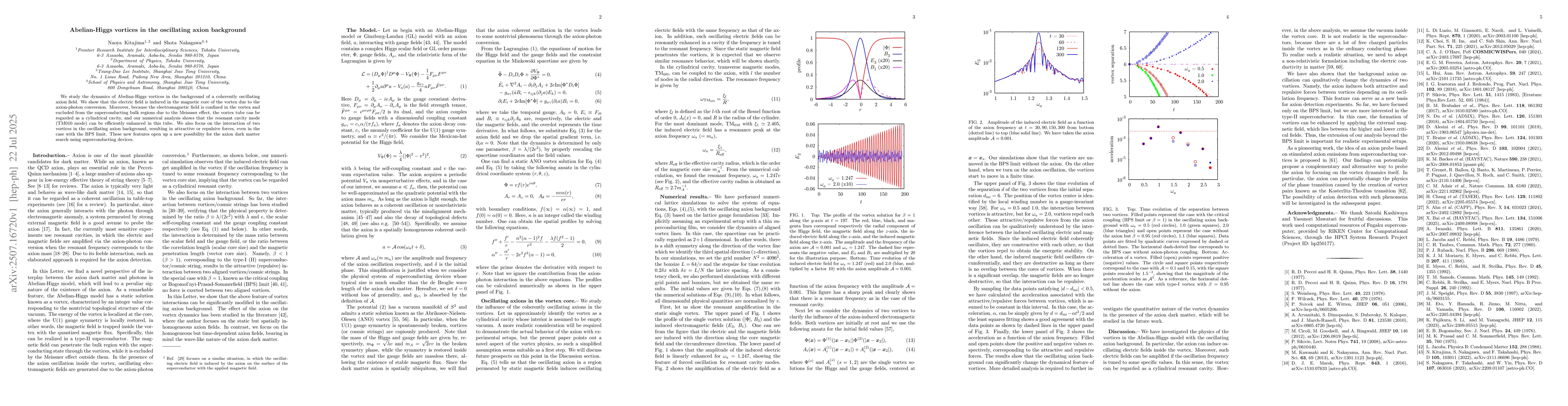 The paper presents a novel approach to studying axion-photon conversion in the context of Abelian-Higgs vortices, highlighting the resonant cavity behavior and axion-induced vortex dynamics.