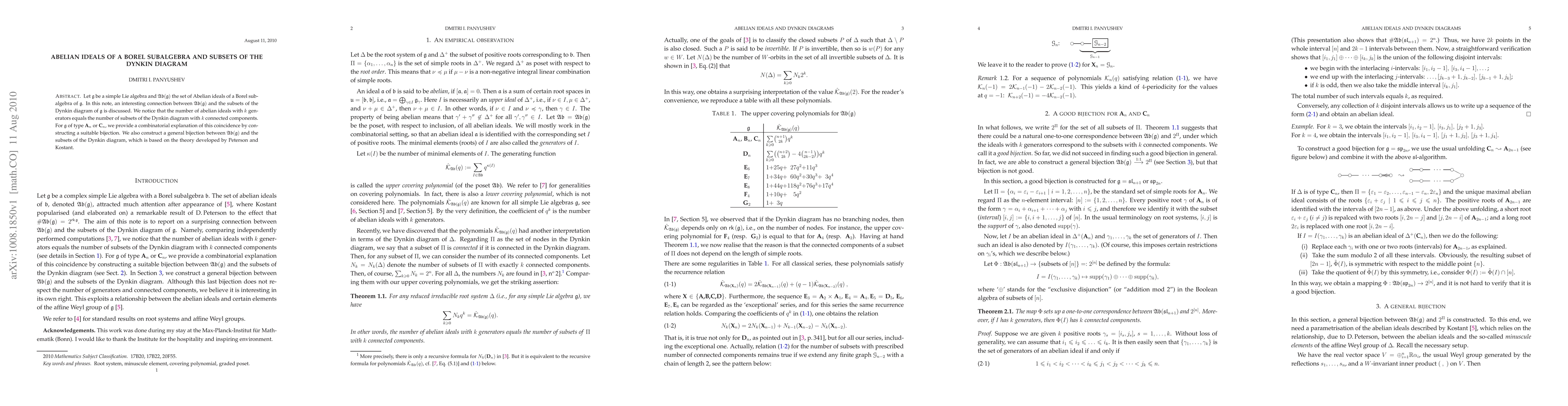Researchers discovered a connection between Abelian ideals of Borel subalgebras in simple Lie algebras and subsets of their Dynkin diagrams, finding that the number of abelian ideals with k generators equals the number of subsets with k connected components.