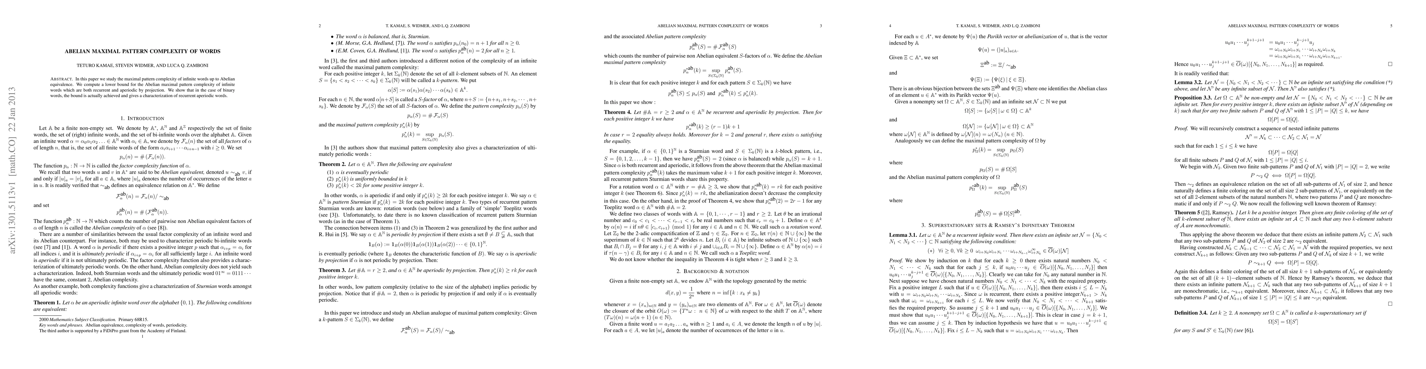 In this paper we study the maximal pattern complexity of infinite words up to Abelian equivalence. We compute a lower bound for the Abelian maximal pattern complexity of infinite words which are both recurrent and aperiodic by projection. We show that in the case of binary words, the bound is actually achieved and gives a characterization of recurrent aperiodic words.