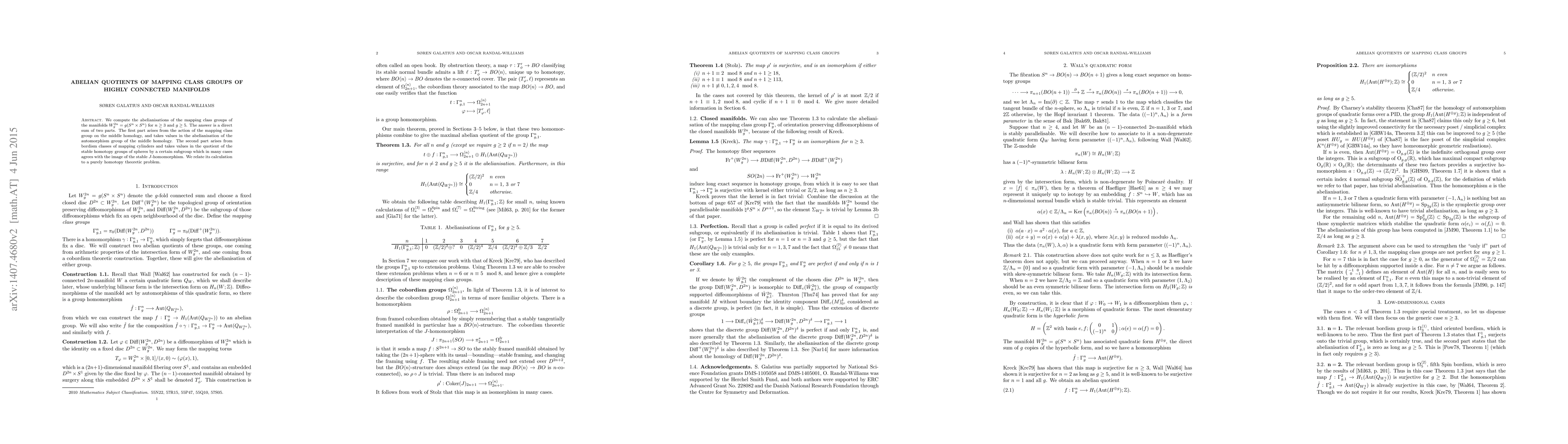 The paper computes abelian quotients of mapping class groups for highly connected manifolds, revealing two distinct parts that relate to middle homology and stable homotopy groups, with implications for purely homotopy theoretic problems.