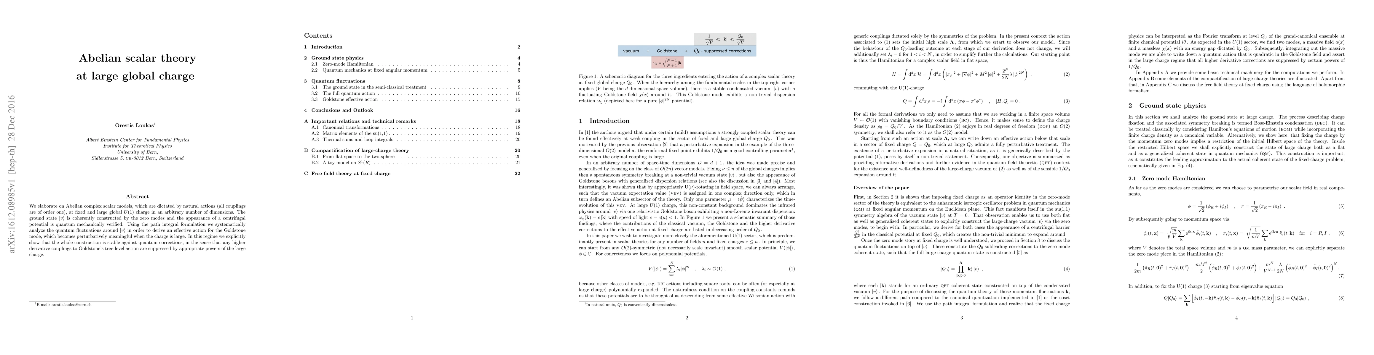 We elaborate on Abelian complex scalar models, which are dictated by natural actions (all couplings are of order one), at fixed and large global $U(1)$ charge in an arbitrary number of dimensions. The ground state $| \upsilon\rangle$ is coherently constructed by the zero modes and the appearance of a centrifugal potential is quantum mechanically verified. Using the path integral formulation we systematically analyze the quantum fluctuations around $| \upsilon\rangle$ in order to derive an effective action for the Goldstone mode, which becomes perturbatively meaningful when the charge is large. In this regime we explicitly show that the whole construction is stable against quantum corrections, in the sense that any higher derivative couplings to Goldstone's tree-level action are suppressed by appropriate powers of the large charge.
