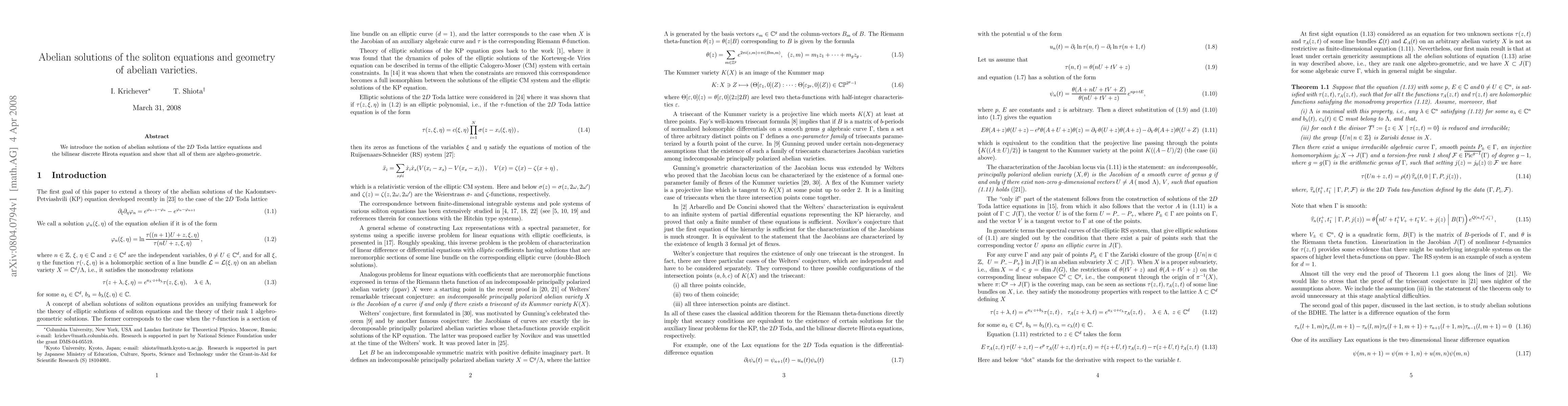 We introduce the notion of abelian solutions of the 2D Toda lattice equations and the bilinear discrete Hirota equation and show that all of them are algebro-geometric.