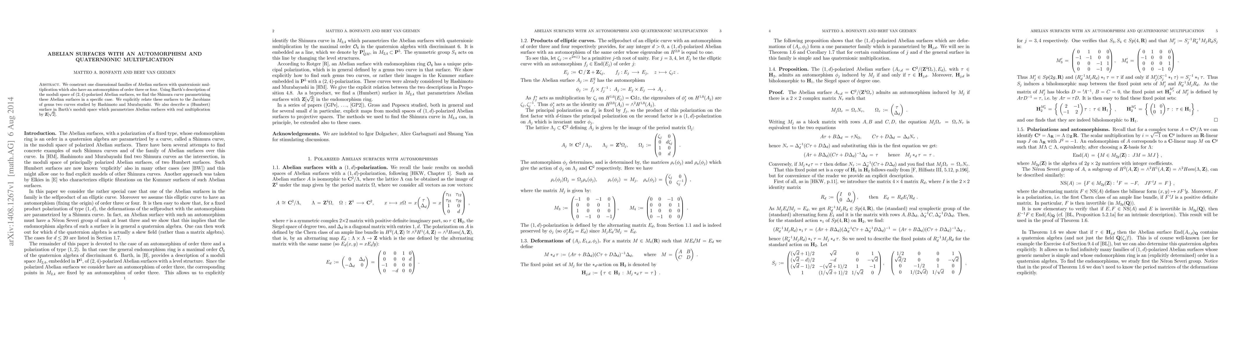 The paper presents a detailed construction and analysis of Abelian surfaces with quaternionic multiplication and automorphisms, linking them to known results on genus two curves.