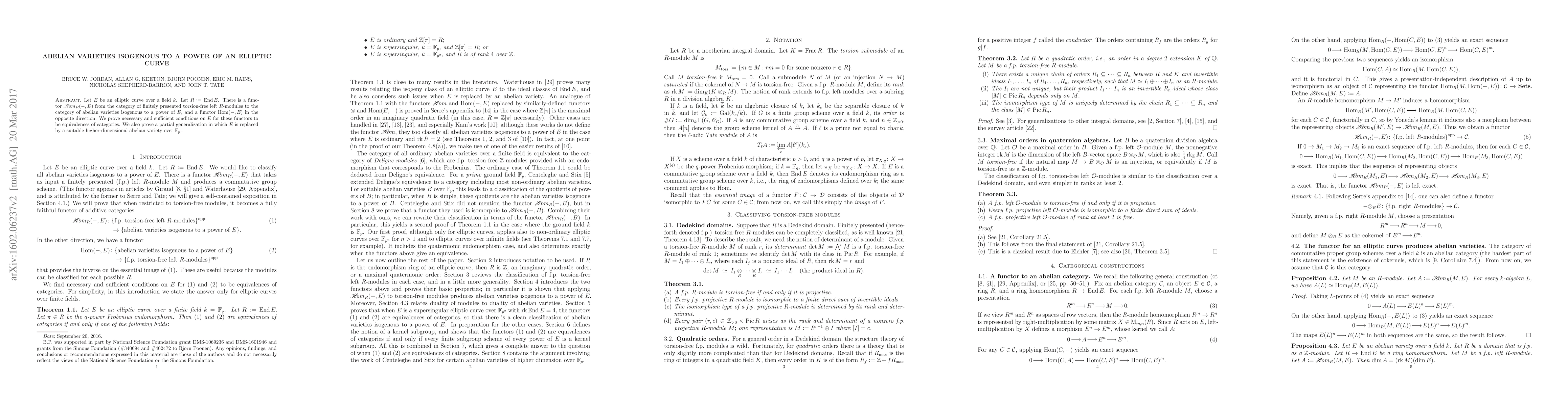 This paper establishes necessary and sufficient conditions for the equivalence of categories between finitely presented torsion-free left $R$-modules and abelian varieties isogenous to a power of a given elliptic curve $E$ over a field $k$. The study focuses on the functors $\mathscr{H}\!\!\mathit{om}_R(-,E)$ and $\text{Hom}(-,E)$.