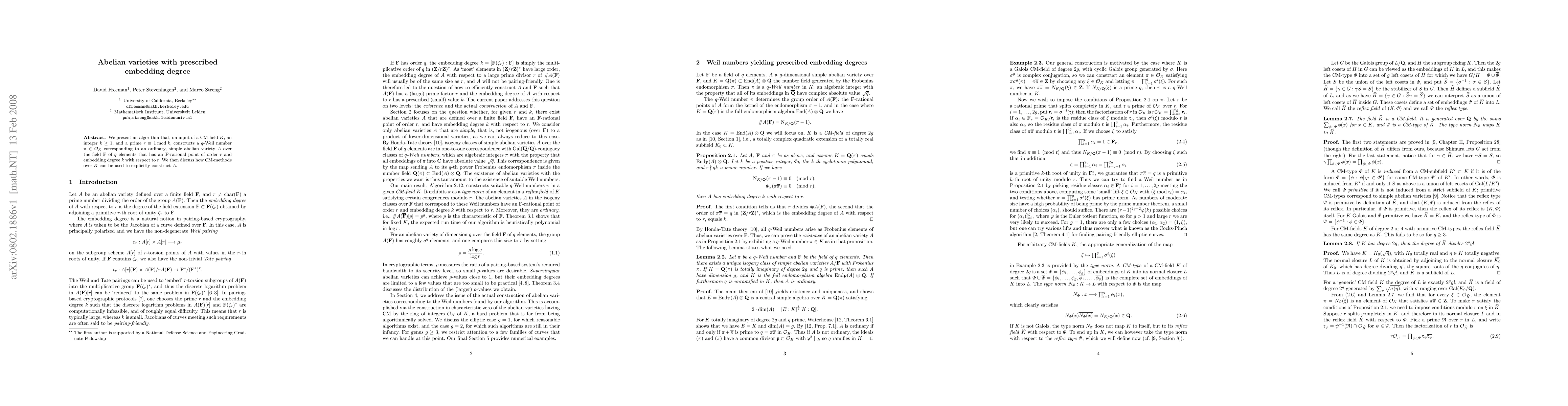 We present an algorithm that, on input of a CM-field $K$, an integer $k\ge1$, and a prime $r \equiv 1 \bmod k$, constructs a $q$-Weil number $\pi \in \O_K$ corresponding to an ordinary, simple abelian variety $A$ over the field $\F$ of $q$ elements that has an $\F$-rational point of order $r$ and embedding degree $k$ with respect to $r$. We then discuss how CM-methods over $K$ can be used to explicitly construct $A$.