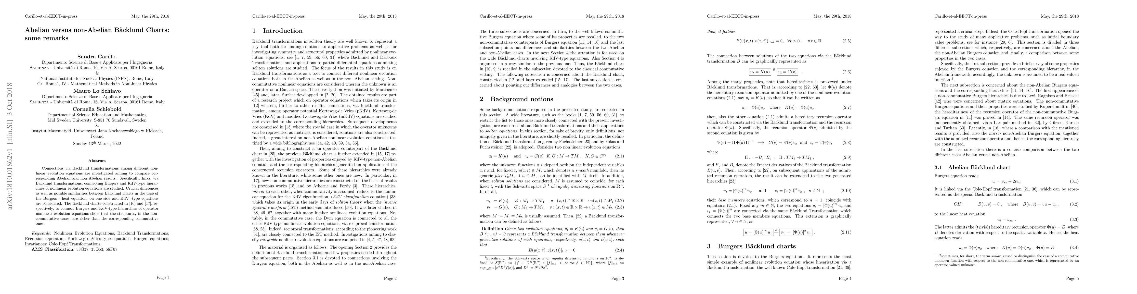 This paper investigates Baecklund transformations linking Burgers and KdV-type nonlinear evolution equations, highlighting differences between Abelian and non-Abelian Baecklund charts. The study reveals that non-commutative structures are more complex than their commutative counterparts.