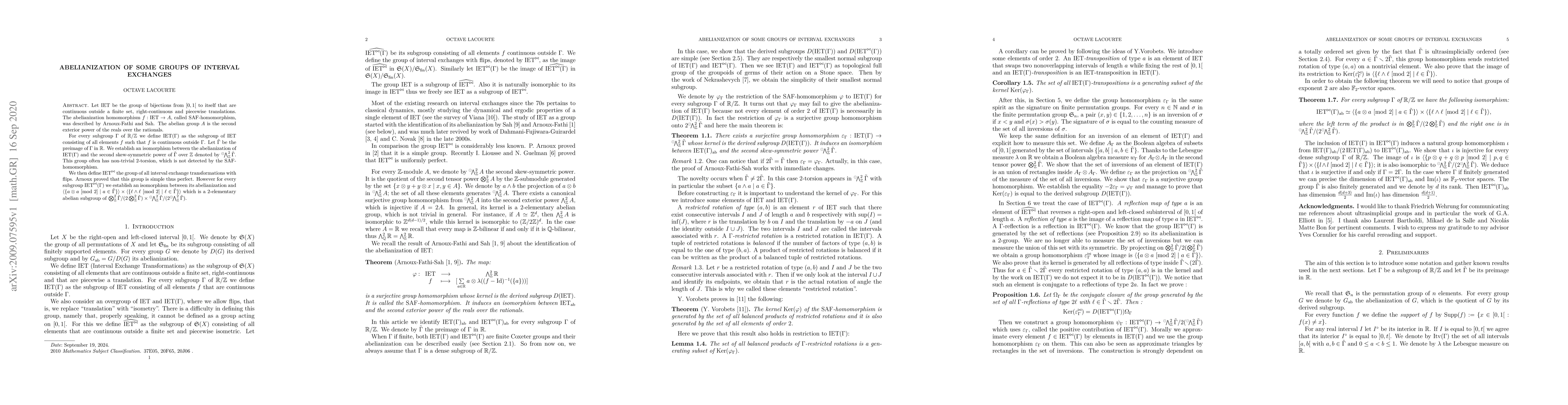 This paper studies the abelianization of groups of interval exchanges and their subgroups, revealing an isomorphism between the abelianization of certain subgroups and specific skew-symmetric powers. It also explores the abelianization of interval exchange transformations with flips, showing a connection to a $2$-elementary abelian subgroup of a tensor product quotient.