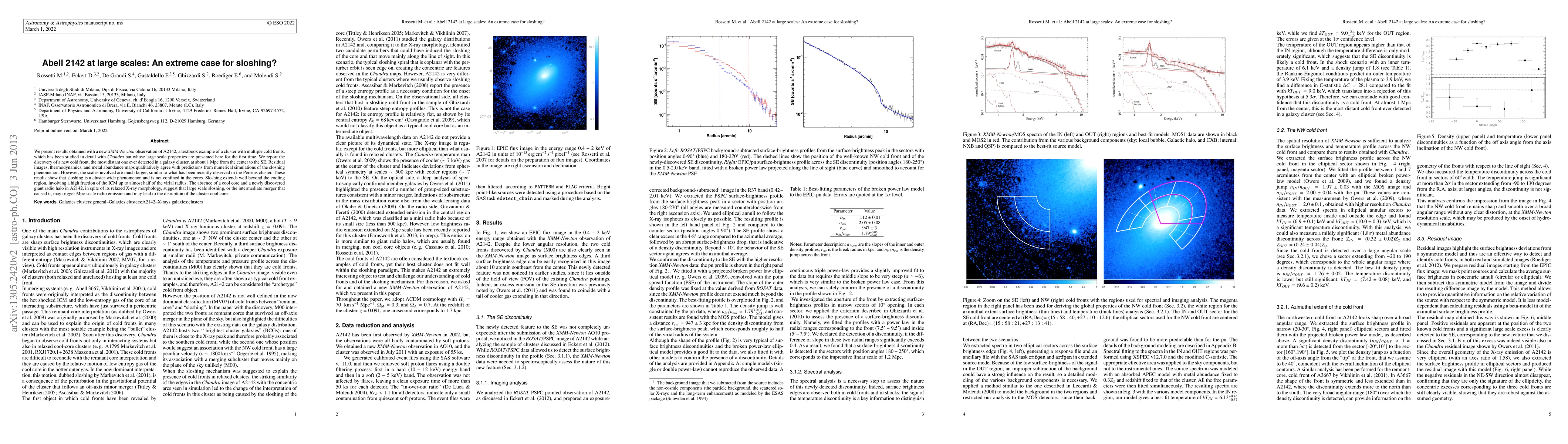 We present results obtained with a new XMM-Newton observation of A2142, a famous textbook example of cluster with multiple cold fronts, which has been studied in detail with Chandra but whose large scale properties are presented here for the first time. We report the discovery of a a new cold front, the most distant one ever detected in a galaxy cluster, at about one Mpc from the center to the SE. Residual images, thermodynamics and metal abundance maps are qualitatively in agreement with predictions from numerical simulations of the sloshing phenomenon. However, the scales involved are much larger, similarly to what recently observed in the Perseus cluster. These results show that sloshing is a cluster-wide phenomenon, not confined in the cores, which extends well beyond the cooling region involving a large fraction of the ICM up to almost half of the virial radius. The absence of a cool core and a newly discovered giant radio halo in A2142, in spite of its relaxed X-ray morphology, suggest that large scale sloshing, or the intermediate merger which caused it, may trigger Mpc-scale radio emission and may lead to the disruption of the cluster cool core