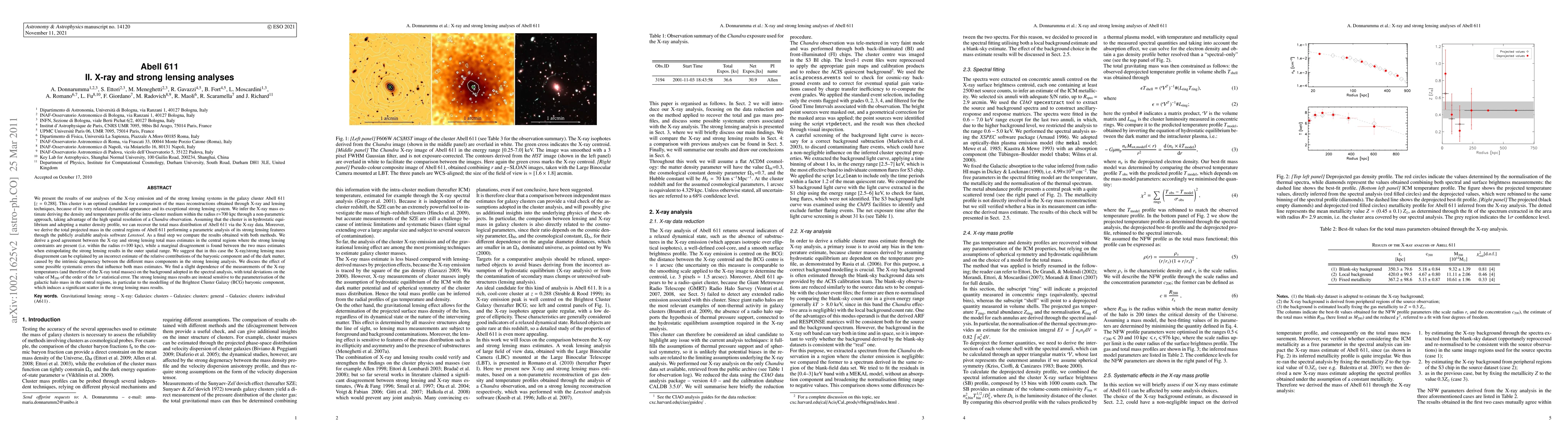 This paper analyzes the X-ray emission and strong lensing systems in the galaxy cluster Abell 611, deriving mass estimates through both methods. It finds good agreement in the central region but marginal disagreement in the outer regions, suggesting potential systematic errors in the strong lensing analysis.