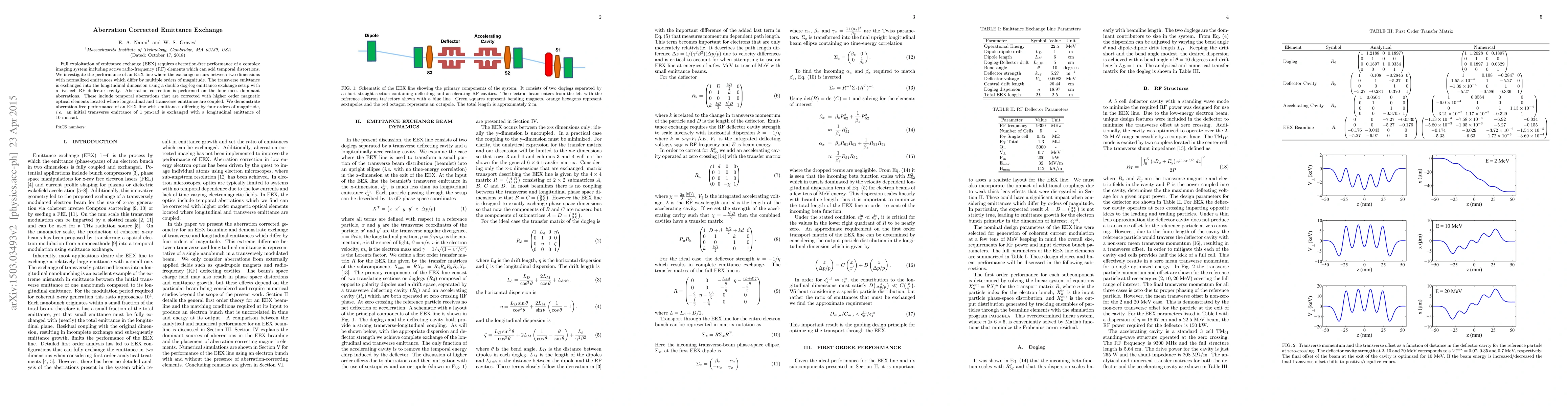 This paper investigates the performance of an aberration-corrected emittance exchange (EEX) line, demonstrating the exchange of transverse emittance into the longitudinal dimension with minimal aberrations. Aberration correction, including temporal distortions, is achieved using a double dog-leg setup and higher-order magnetic optical elements, successfully exchanging an initial transverse emittance of 1 pm-rad to a longitudinal emittance of 10 nm-rad.