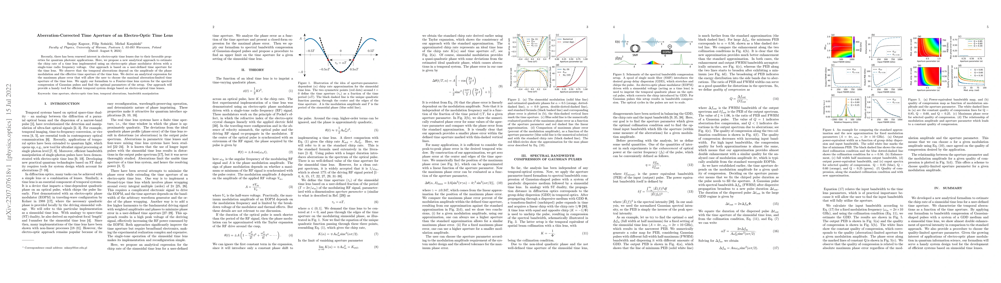 This paper proposes an analytical method to estimate the chirp rate of electro-optic time lenses, focusing on minimizing temporal aberrations. It provides an expression for the maximum phase error to determine the optimal time aperture, applied to a Fourier-time lens system for spectral compression of Gaussian pulses.