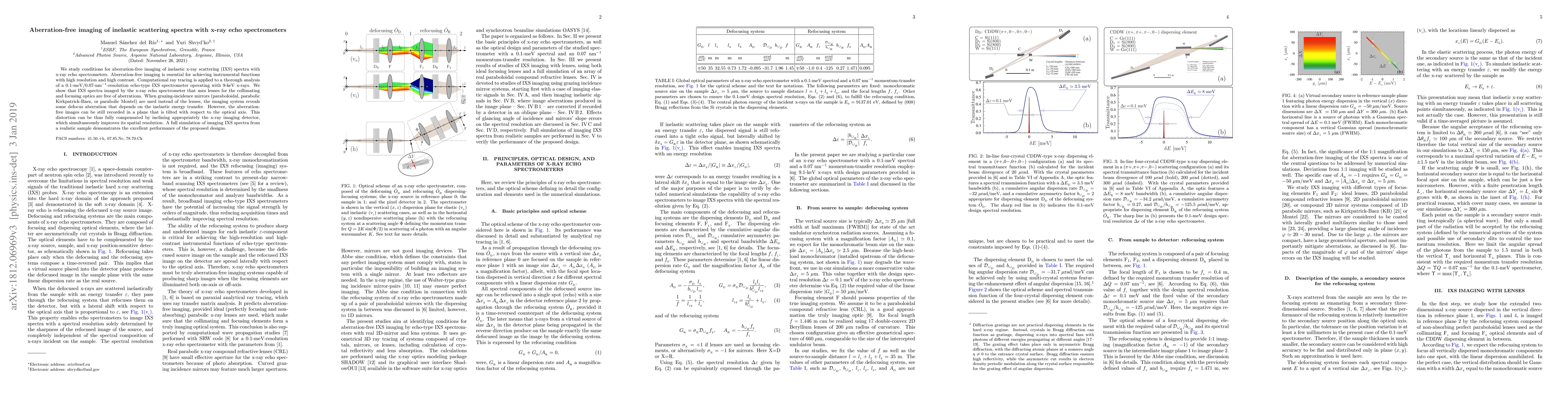 This paper investigates the conditions for aberration-free imaging of inelastic x-ray scattering spectra using x-ray echo spectrometers, demonstrating that lens-based optics provide aberration-free imaging. When mirrors are used instead, defocus aberrations can be compensated by tilting the detector, thereby improving spatial resolution.