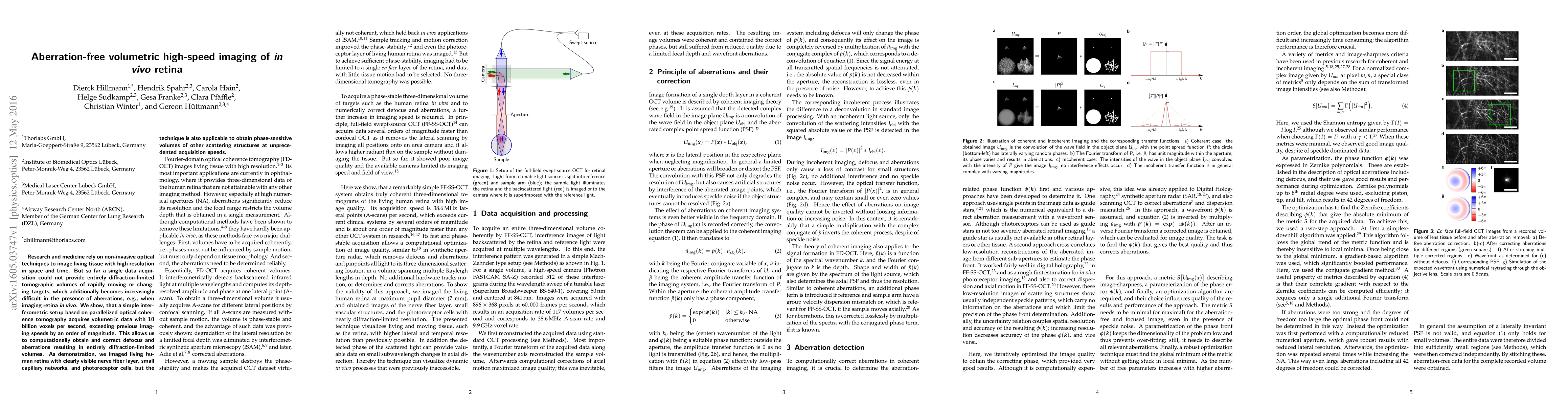This paper presents an interferometric setup using parallelized optical coherence tomography to achieve aberration-free volumetric high-speed imaging of the living retina, capturing 10 billion voxels per second and correcting for defocus and aberrations to obtain diffraction-limited tomographic volumes. The technique successfully images human retina structures at unprecedented speeds.