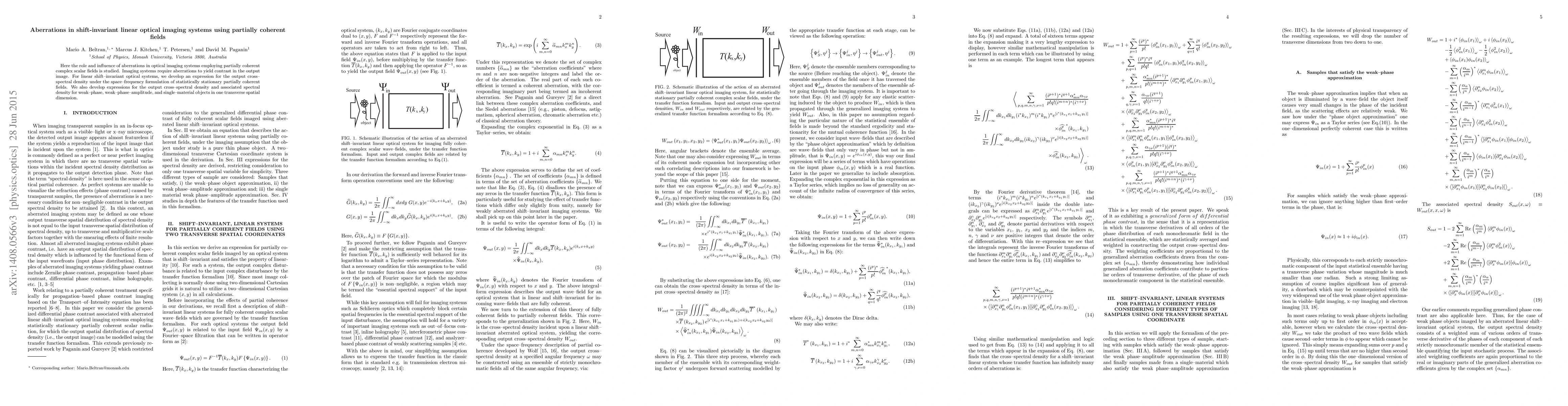 This paper investigates the impact of aberrations in linear shift-invariant optical imaging systems using partially coherent fields, developing expressions for the output cross-spectral density under various object conditions. Aberrations are essential for the contrast in the resulting images.