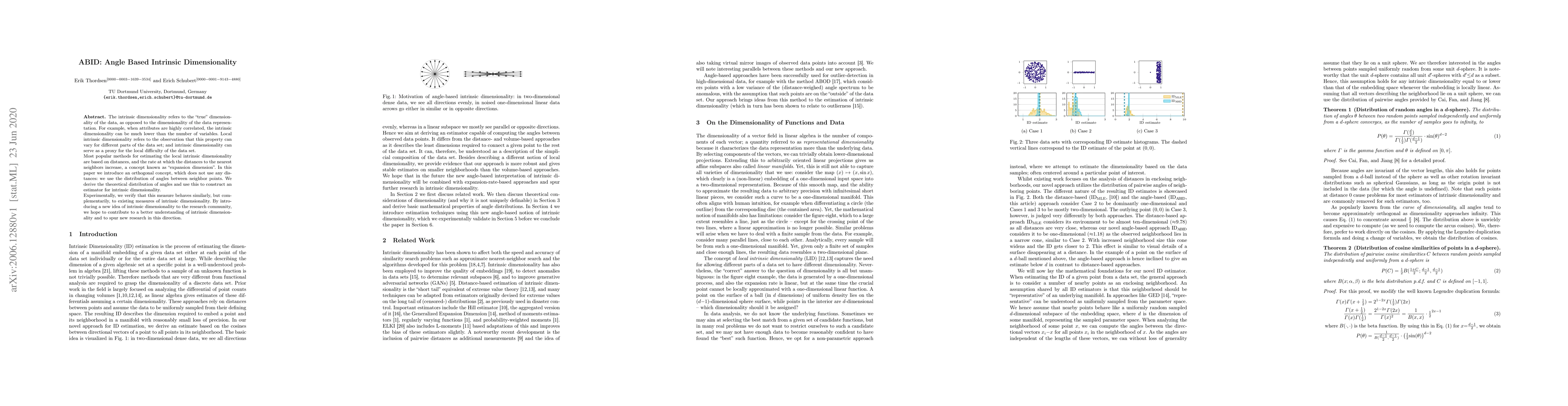 This paper introduces ABID, a novel method for estimating local intrinsic dimensionality based on the distribution of angles between neighboring data points, rather than distances. This angle-based approach complements existing distance-based methods and aims to enhance the understanding of intrinsic dimensionality in data.
