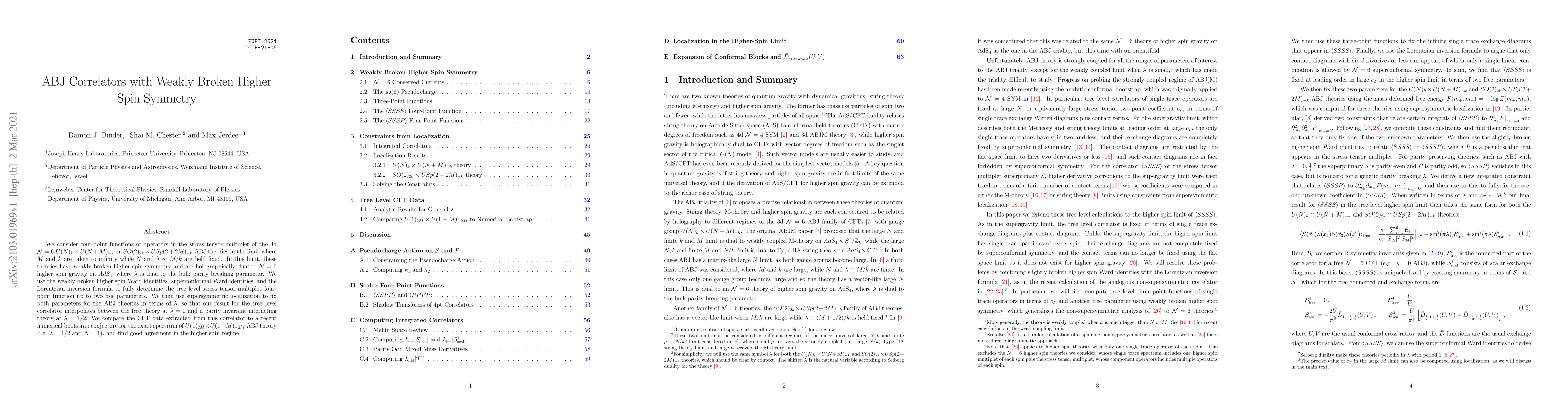 This paper determines the four-point function of operators in the stress tensor multiplet of 3d $\mathcal{N}=6$ ABJ theories with weakly broken higher spin symmetry, using Ward identities and supersymmetric localization. The results show good agreement with a numerical bootstrap conjecture for the exact spectrum in the higher spin regime.