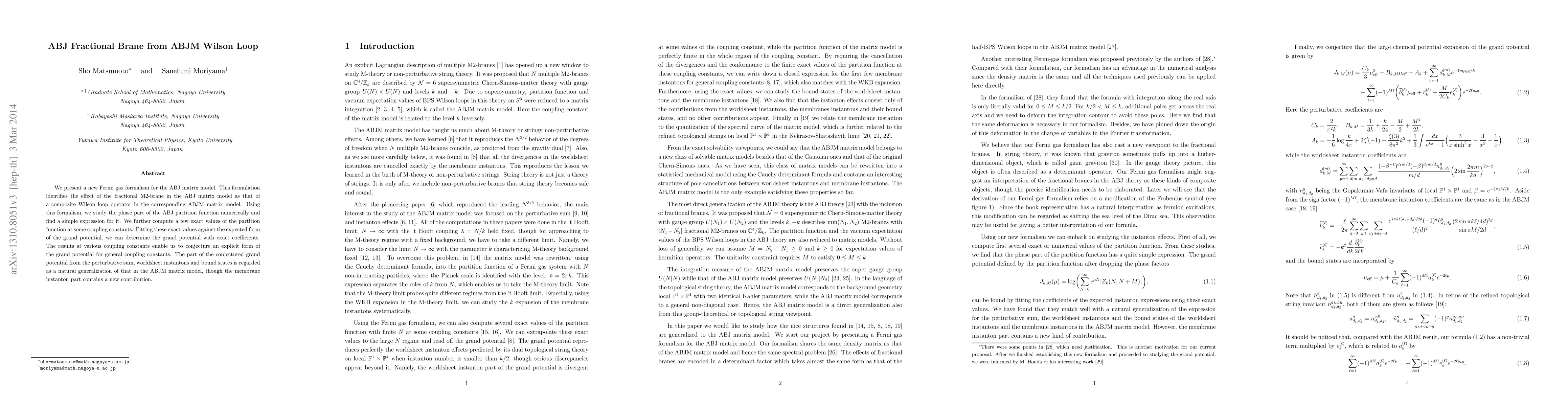 This paper introduces a Fermi gas formalism for the ABJ matrix model, identifying the fractional M2-brane effect as a composite Wilson loop operator in the ABJM model. It numerically determines the phase part of the ABJ partition function and conjectures an explicit form for the grand potential, including new contributions from membrane instantons.