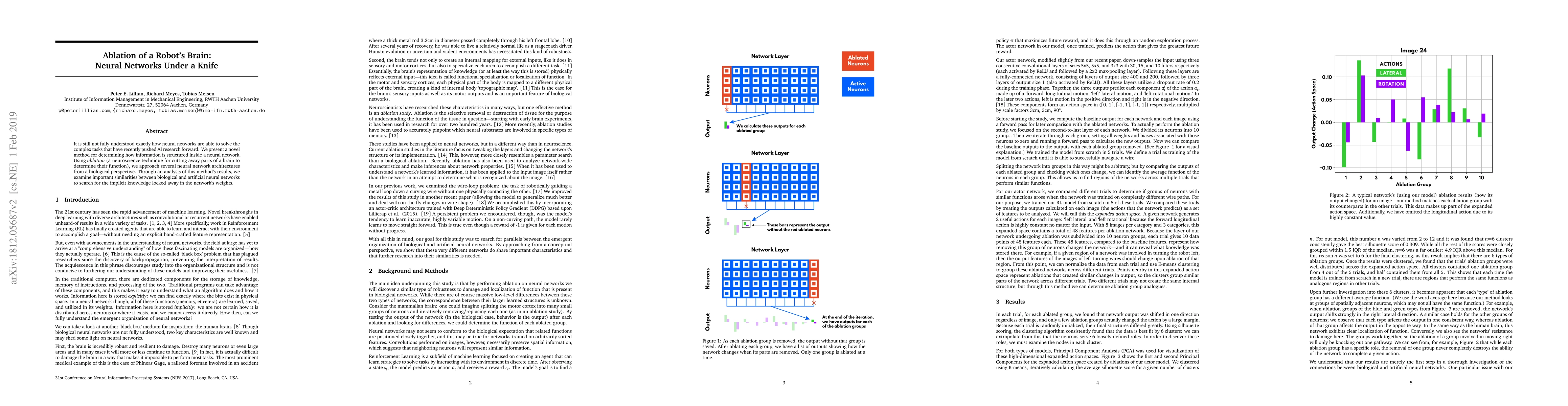 It is still not fully understood exactly how neural networks are able to solve the complex tasks that have recently pushed AI research forward. We present a novel method for determining how information is structured inside a neural network. Using ablation (a neuroscience technique for cutting away parts of a brain to determine their function), we approach several neural network architectures from a biological perspective. Through an analysis of this method's results, we examine important similarities between biological and artificial neural networks to search for the implicit knowledge locked away in the network's weights.