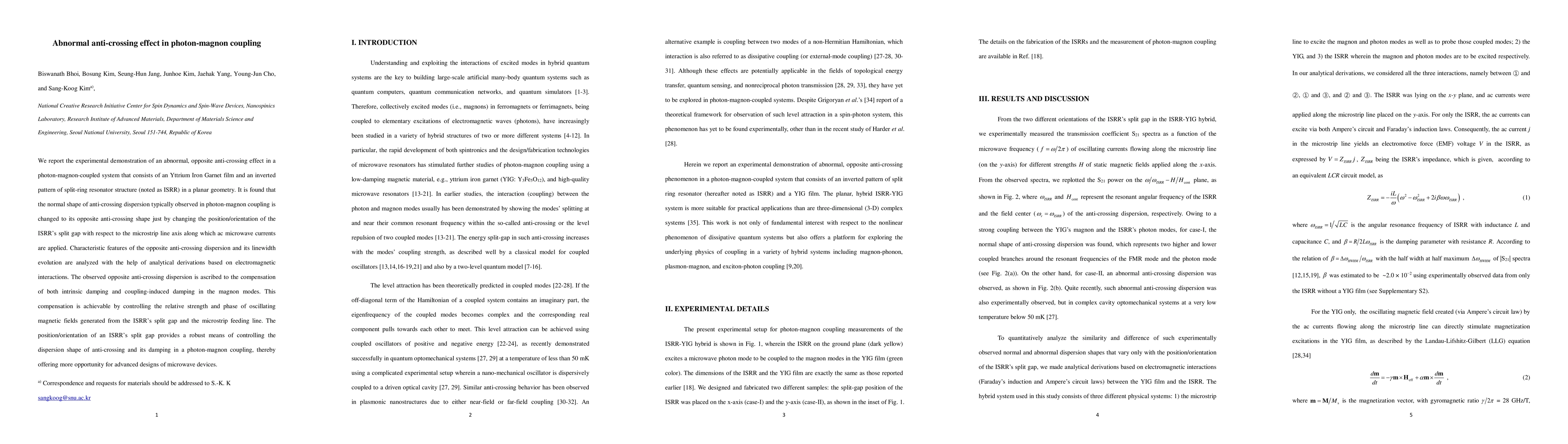 This paper demonstrates an unusual anti-crossing effect in a photon-magnon coupled system, where changing the ISRR's split gap position alters the anti-crossing dispersion shape. The opposite anti-crossing is attributed to the compensation of intrinsic and coupling-induced damping, offering new control over microwave device designs.