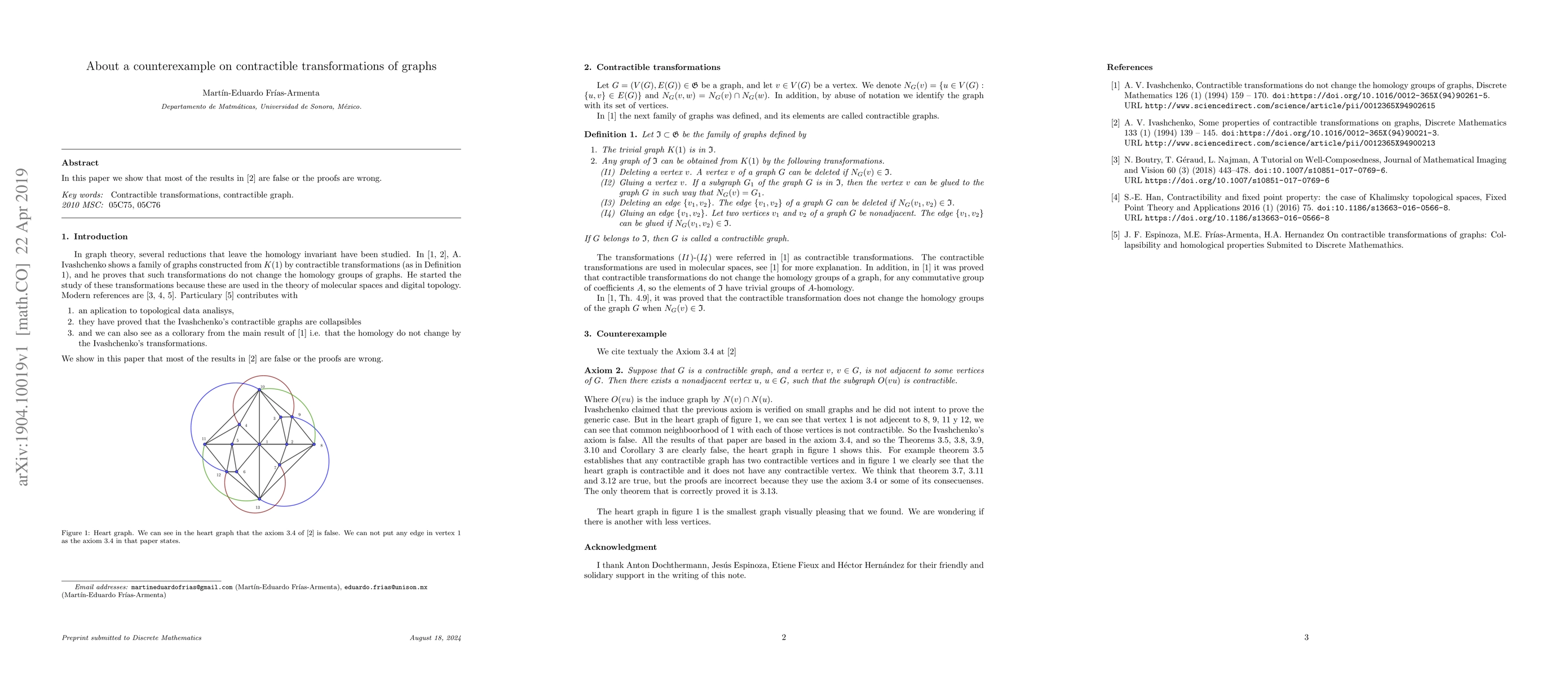 In [A. V. Ivashchenko, Contractible transformations do not change the homology groups of graphs, Discrete Mathematics 126 (1) (1994) p 159,170], Ivashchenko started with the study of contractible graphs, he began with this because they have application to molecular spaces. But in a second paper [A. V. Ivashchenko, Some properties of contractible transformations on graphs, Discrete Mathematics 133 (1) (1994) p 139,145], he made several mistakes. We show in this paper that the results in that second paper are false or the proofs are wrong.