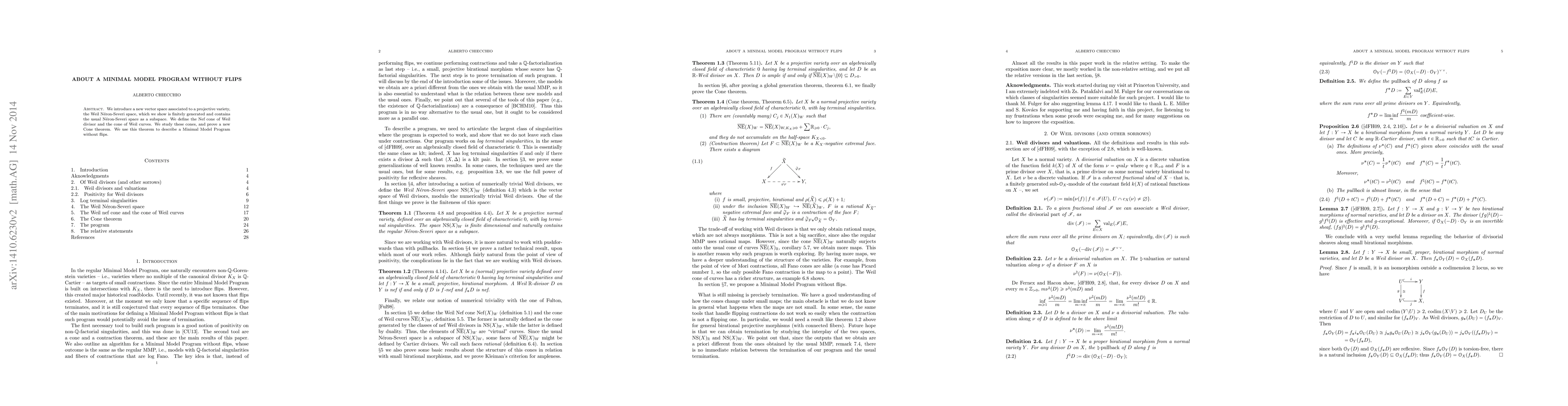 A new vector space associated with projective varieties is introduced, leading to a Minimal Model Program without flips, where the Nef cone and Weil curves provide key insights.