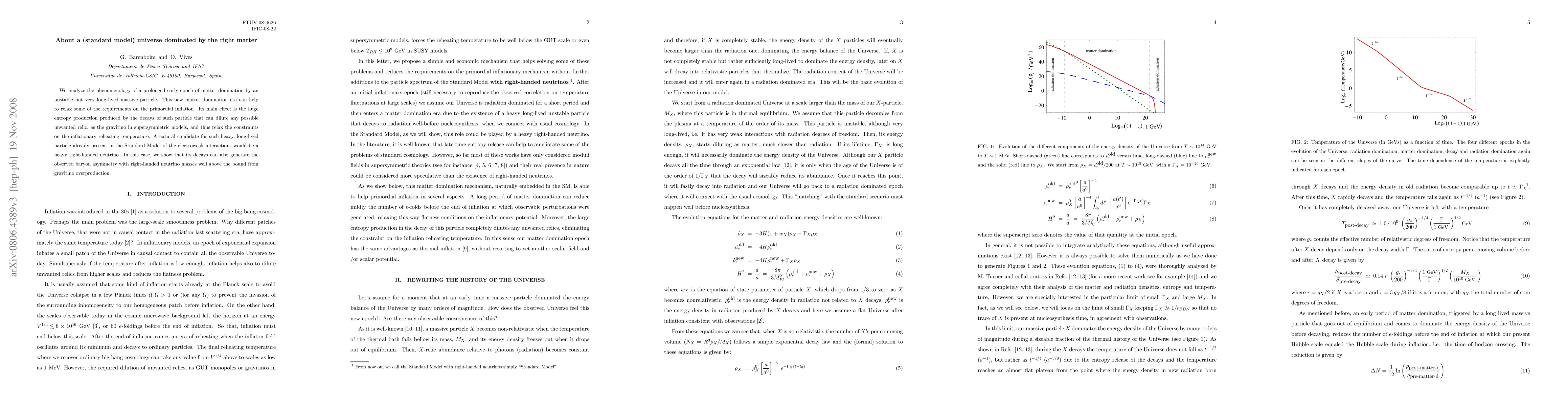 We analyze the phenomenology of a prolonged early epoch of matter domination by an unstable but very long-lived massive particle. This new matter domination era can help to relax some of the requirements on the primordial inflation. Its main effect is the huge entropy production produced by the decays of such particle that can dilute any possible unwanted relic, as the gravitino in supersymmetric models, and thus relax the constraints on the inflationary reheating temperature. Furthermore, a long period of matter domination reduces the number of $e$-foldings after the horizon crossing by observable perturbations and therefore the requirements on flatness of the inflationary potential. A natural candidate for such heavy, long-lived particle already present in the Standard Model of the electroweak interactions would be a heavy right-handed neutrino. In this case, we show that its decays can also generate the observed baryon asymmetry with right-handed neutrino masses well above the bound from gravitino overproduction.