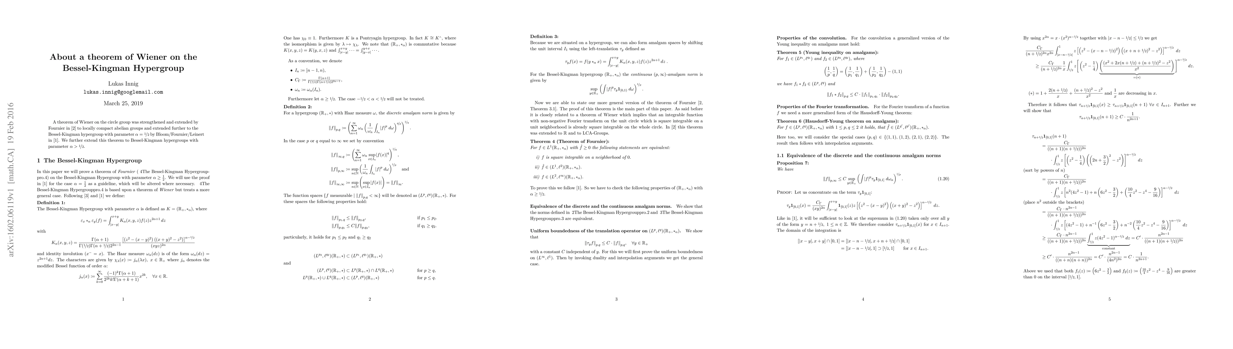 A theorem of Wiener on the circle group was strengthened and extended by Fournier in [2] to locally compact abelian groups and extended further to the Bessel-Kingman hypergroup with parameter {\alpha} = 1 / 2 by Bloom/Fournier/Leinert in [1]. We further extend this theorem to Bessel-Kingman hypergroups with parameter {\alpha} > 1 / 2 .
