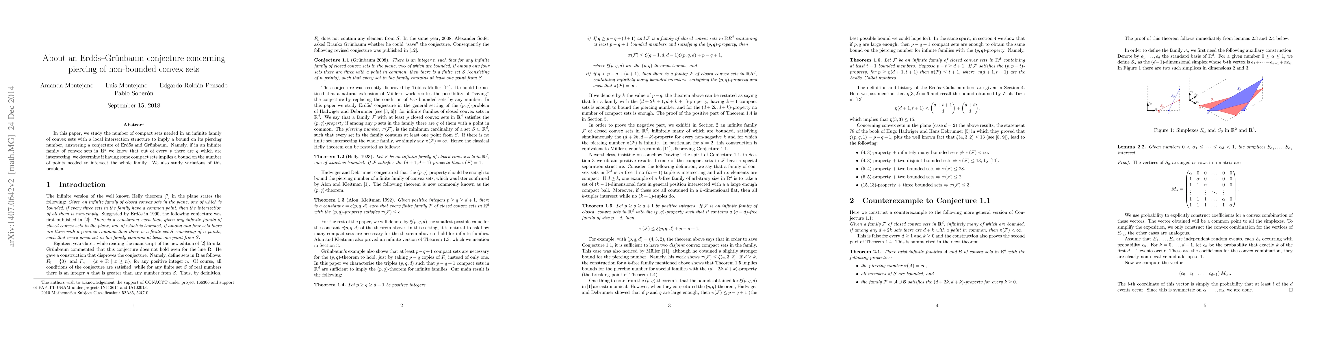 In this paper, we study the number of compact sets needed in an infinite family of convex sets with a local intersection structure to imply a bound on its piercing number, answering a conjecture of Erd\H{o}s and Gr\"unbaum. Namely, if in an infinite family of convex sets in $\mathbb{R}^d$ we know that out of every $p$ there are $q$ which are intersecting, we determine if having some compact sets implies a bound on the number of points needed to intersect the whole family. We also study variations of this problem.