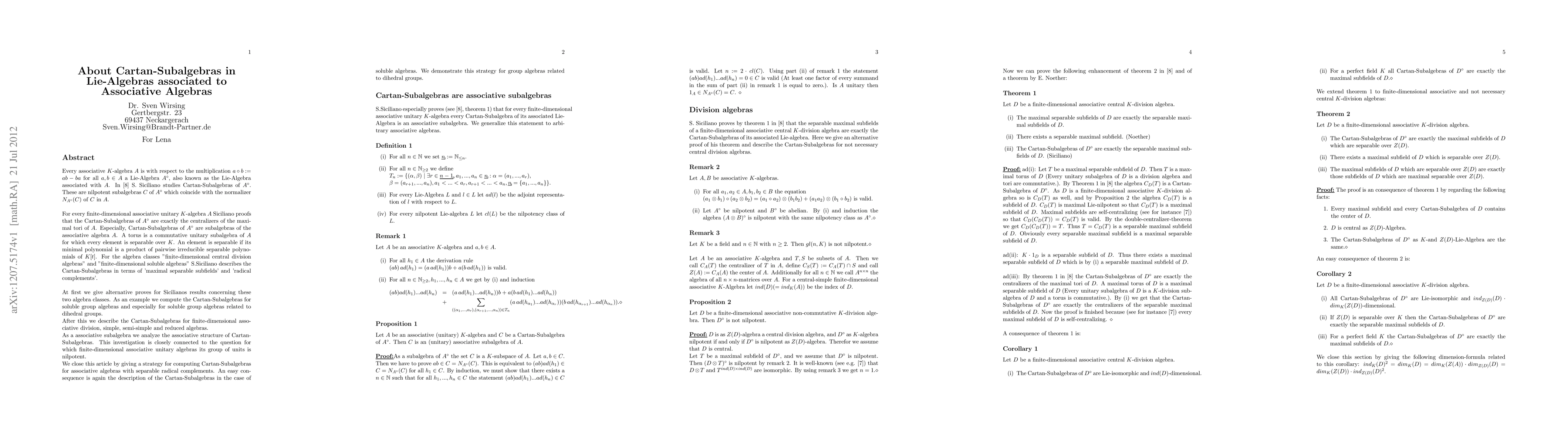 Summary: This paper investigates the structure of Cartan-subalgebras within Lie-algebras derived from associative algebras, aiming to understand their properties and roles in the broader context of algebraic structures.