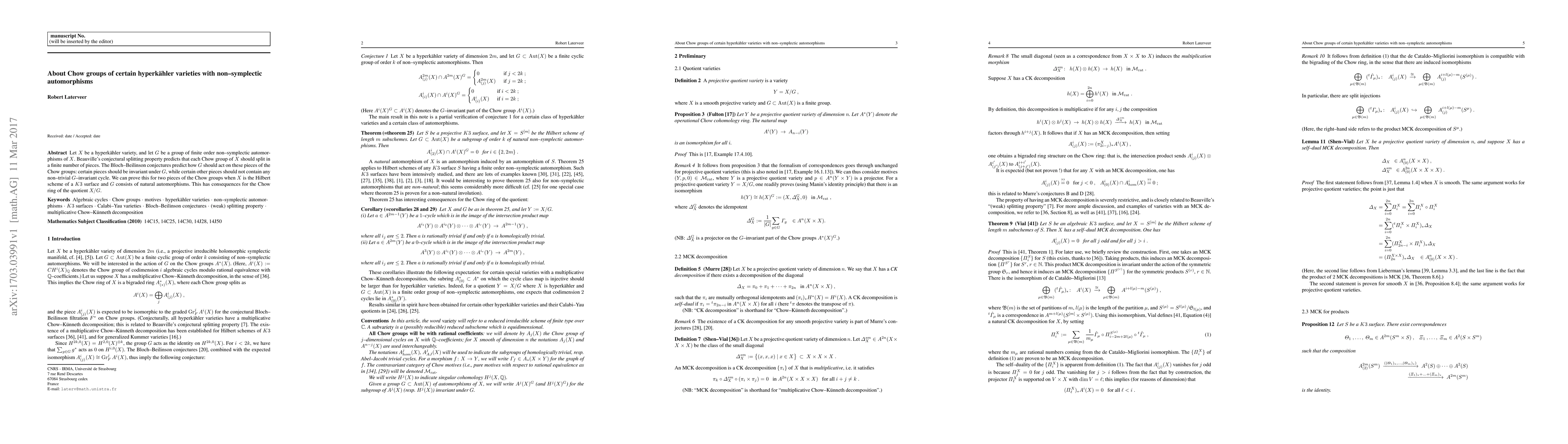 The paper explores the Chow groups of hyperkähler varieties with non-symplectic automorphisms, proving Beauville's and Bloch-Beilinson conjectures for the Hilbert scheme of a K3 surface. The findings have implications for the Chow ring of the quotient space formed by these automorphisms.