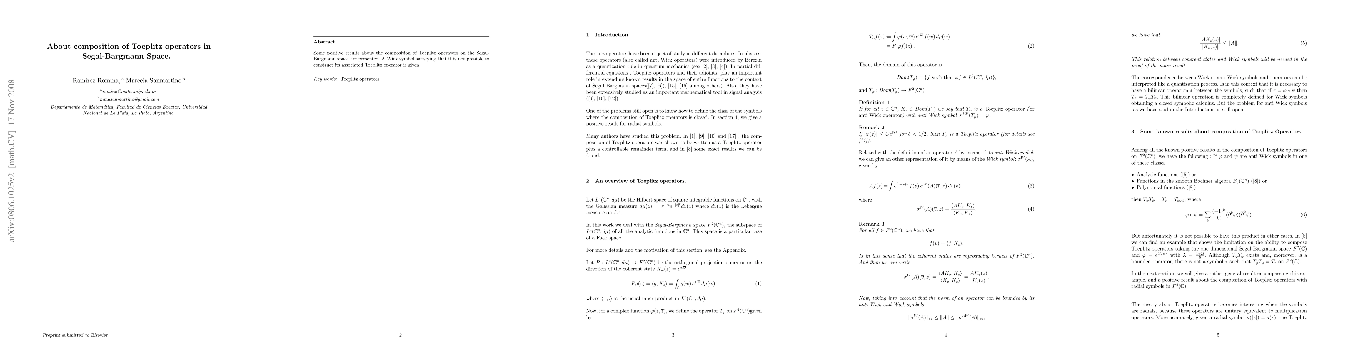 Summary: This paper presents positive results regarding the composition of Toeplitz operators in the Segal-Bargmann space and provides an example of a Wick symbol for which no associated Toeplitz operator can be constructed.