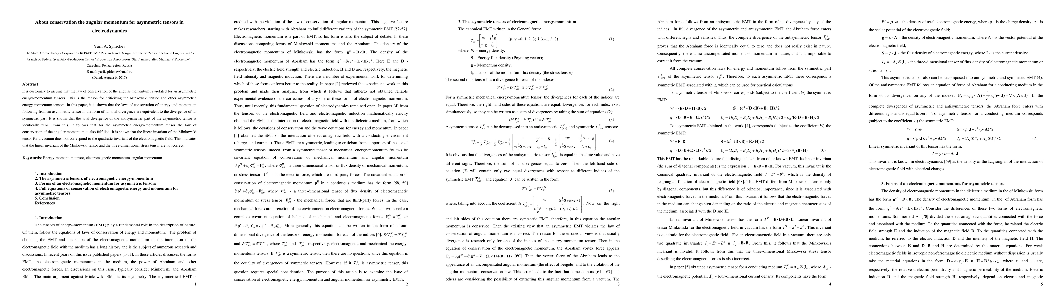 It is customary to assume that the law of conservation of the angular momentum is violated for an asymmetric energy-momentum tensors. This is the reason for criticizing the Minkowski tensor and other asymmetric energy-momentum tensors. In this paper, it is shown that the laws of conservation of energy and momentum following from an asymmetric tensor in the form of its total divergence are equivalent to the divergence of its symmetric part. It is shown that the total divergence of the antisymmetric part of the asymmetric tensor is identically zero. From this, it follows that for the asymmetric energy-momentum tensor the law of conservation of the angular momentum is also fulfilled. It is shown that the linear invariant of the Minkowski tensor for a vacuum does not correspond to the quadratic invariant of the electromagnetic field. This indicates that the linear invariant of the Minkowski tensor and the three-dimensional stress tensor are not correct.