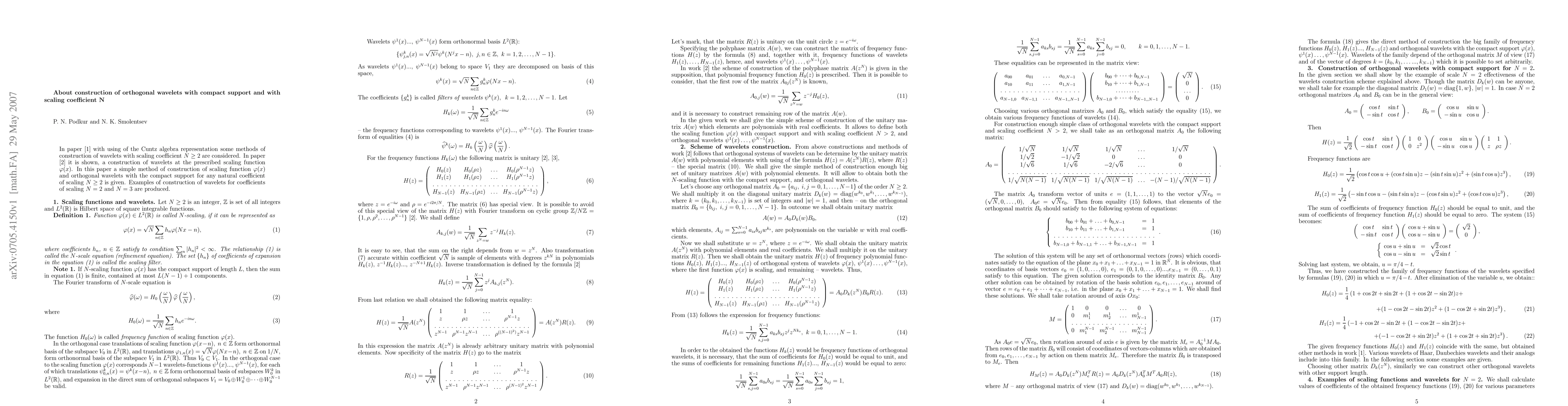 This paper presents a straightforward method for constructing scaling functions and orthogonal wavelets with compact support for any natural scaling coefficient \(N \ge 2\). It provides examples for scaling coefficients \(N = 2\) and \(N = 3\).
