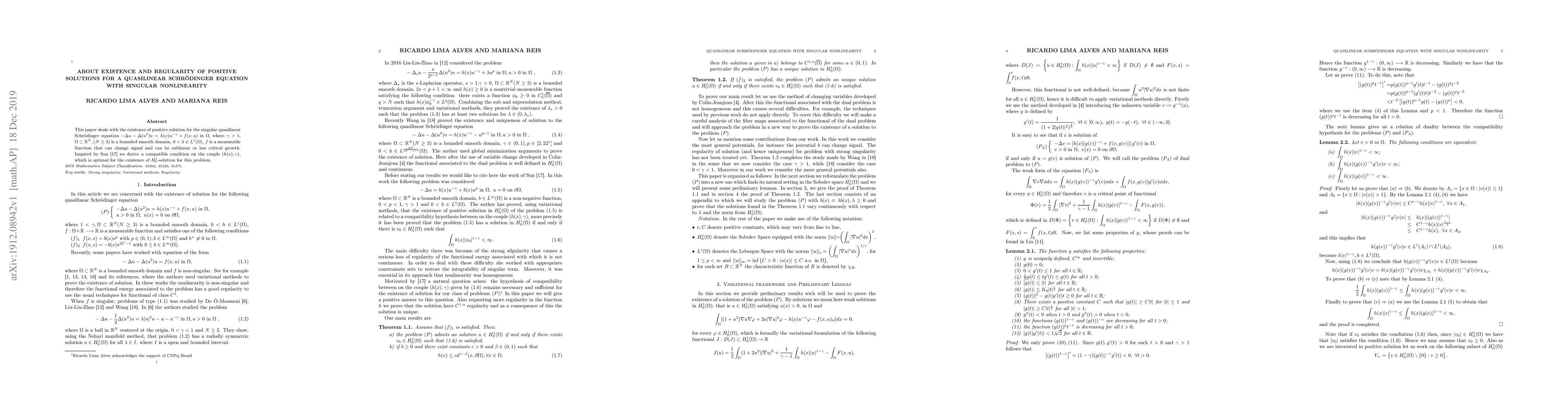 This paper investigates the existence of positive solutions for a specific type of nonlinear Schrödinger equation with singular nonlinearity. It introduces a compatible condition on the parameters h(x) and η that is optimal for the existence of H_{0}^{1}-solutions.