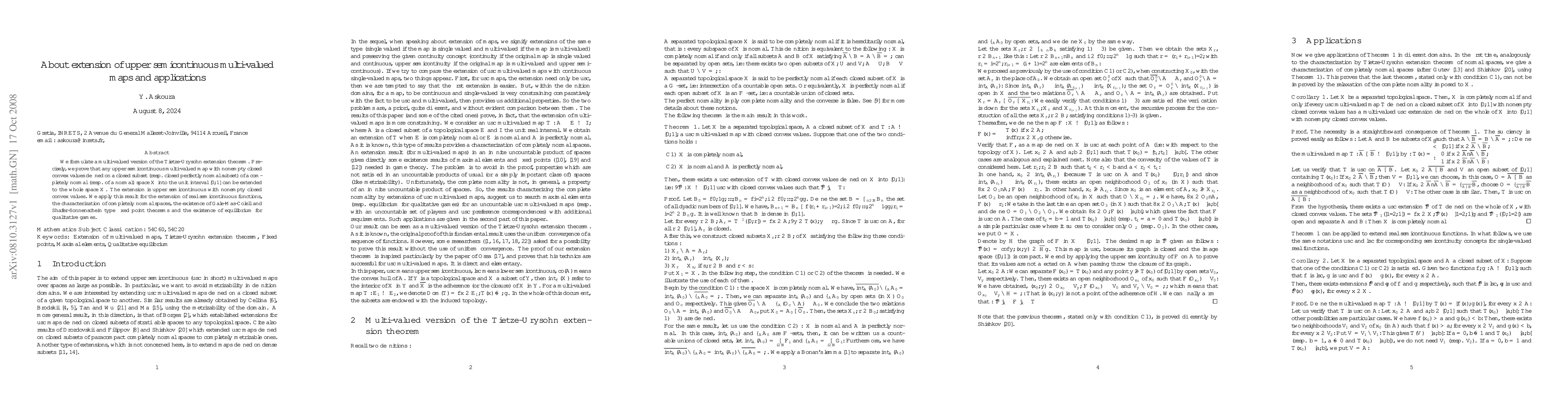 This paper extends the Tietze-Urysohn extension theorem to upper semicontinuous multi-valued maps with nonempty closed convex values, proving their extension across completely normal spaces. Applications include extensions of real semicontinuous functions and the existence of fixed point theorems and equilibria in economic games.
