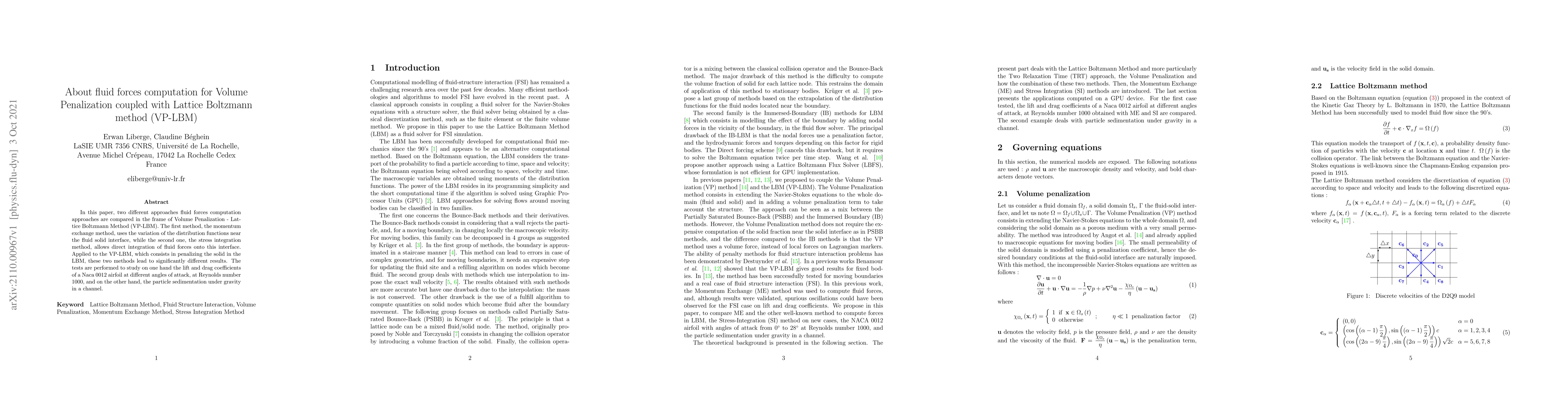 This paper compares two fluid forces computation methods within the Volume Penalization - Lattice Boltzmann Method (VP-LBM): the momentum exchange method and the stress integration method. The results show significant differences when applied to problems like airfoil lift and drag, and particle sedimentation under gravity.