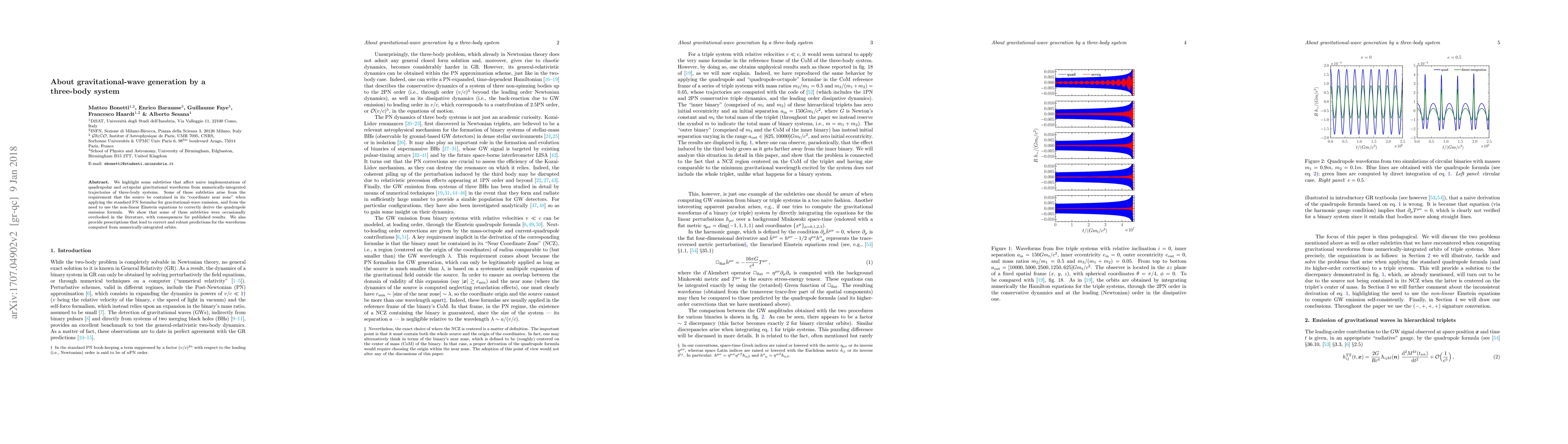 This paper discusses the complexities in generating gravitational-wave signals from three-body systems, emphasizing the inaccuracies in naively applying quadrupolar and octupolar waveforms. It highlights the necessity of using non-linear Einstein equations and proper coordinate near-zone considerations to avoid overlooked subtleties that affect published results, and provides improved methods for accurate waveform predictions.