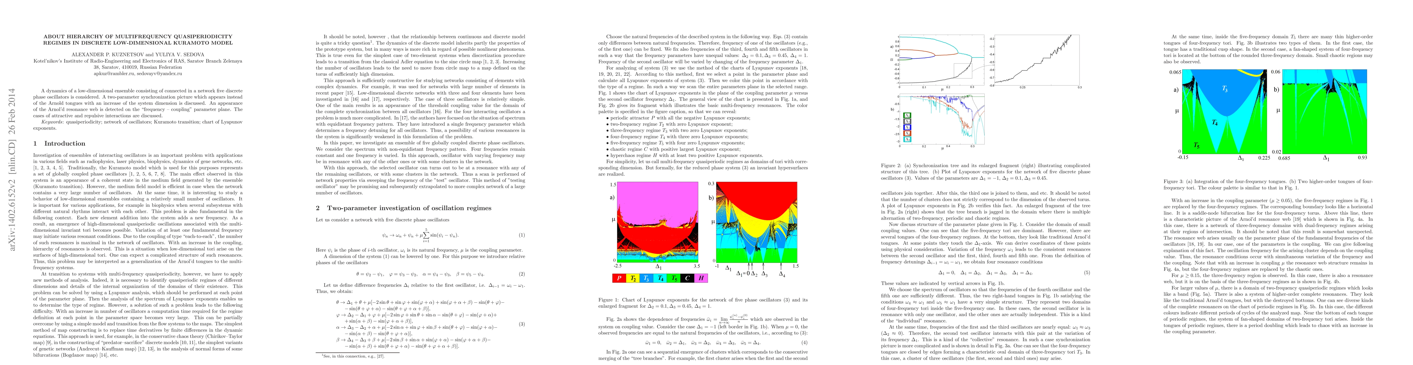 A dynamics of a low-dimensional ensemble consisting of connected in a network five discrete phase oscillators is considered. A two-parameter synchronization picture which appears instead of the Arnold tongues with an increase of the system dimension is discussed. An appearance of the Arnol'd resonance web is detected on the "frequency - coupling" parameter plane. The cases of attractive and repulsive interactions are discussed.